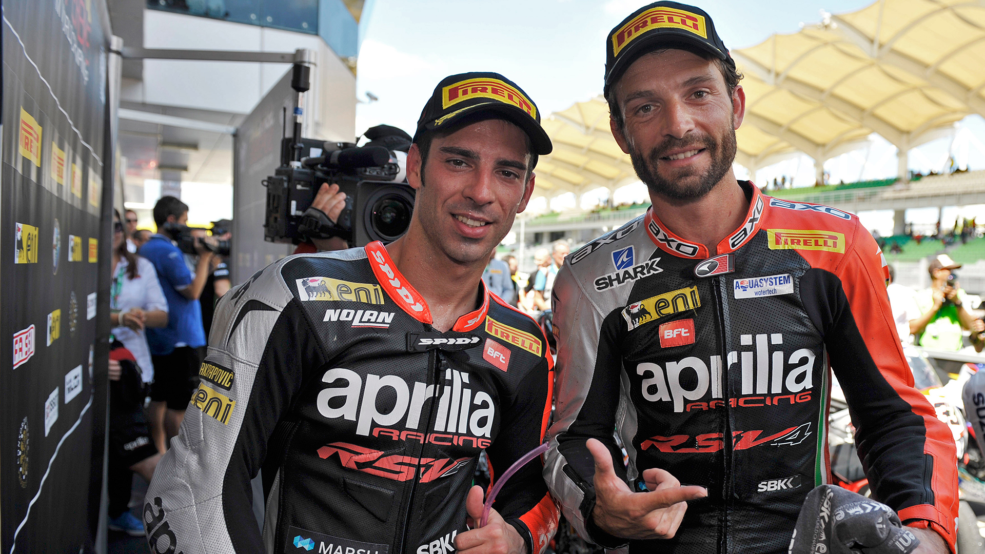 La prima giornata di gare del Campionato Mondiale eni FIM Superbike a Sepang porta la firma di Aprilia, dominatrice di entrambe le corse. La doppietta di Marco Melandri e il doppio secondo posto di Sylvain Guintoli mettono il sigillo su un weekend semplicemente perfetto, con le RSV4, compresa la “satellite” di Toni Elias, che hanno dimostrato di adattarsi al meglio al tracciato malese.