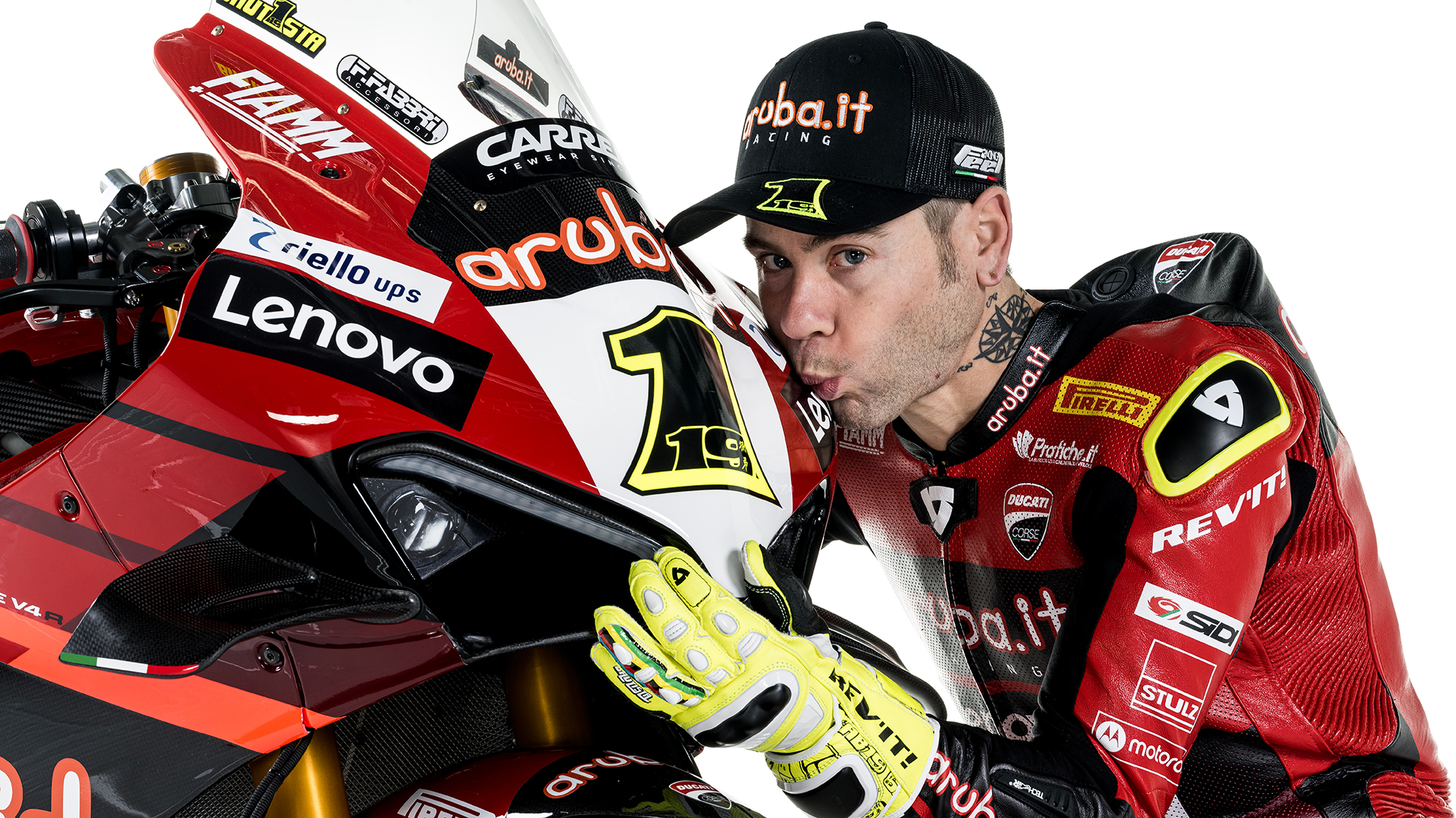 Nach einer unglaublichen Saison 2022, in der sie den Fahrer-, Hersteller- und Mannschaftstitel in der MOTUL FIM Superbike-Weltmeisterschaft gewonnen haben, hat das Team Aruba.it Racing - Ducati seine Panigale V4 R für die Titelverteidigung vorgestellt. Es gab viele Spekulationen darüber, ob Fahrer-Champion Alvaro Bautista bei seinem traditionellen Start-Nummer 19 bleiben oder auf das berühmte Nummernschild mit der Nummer 1 wechseln würde, das den Titelverteidigern vorbehalten ist. Der Spanier entschied sich für das Nummernschild mit der Nummer 1 für das Jahr 2023; das Design der Nummer 1 zeigt seine Nummer 19 in einer kleineren Schrift.