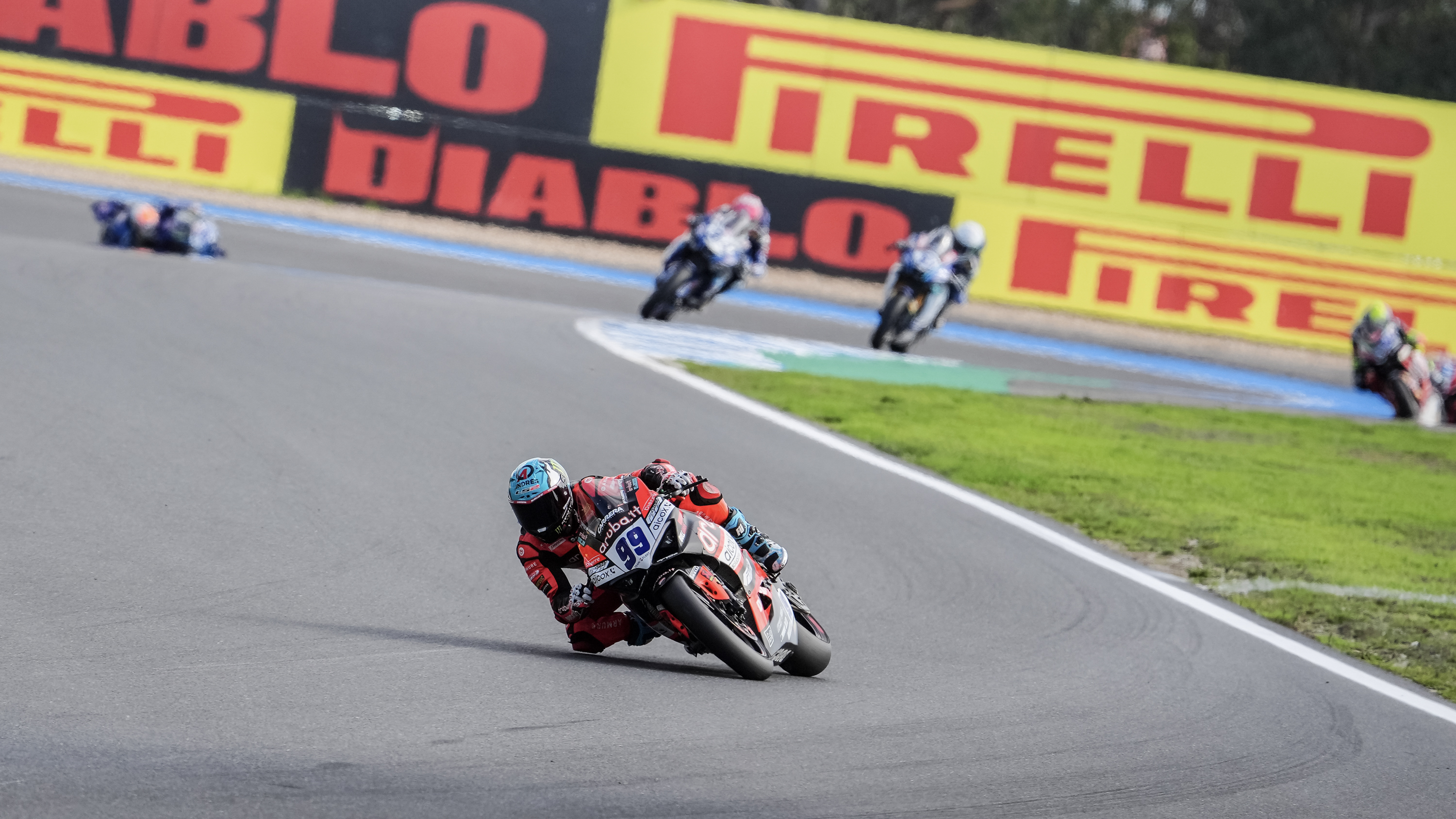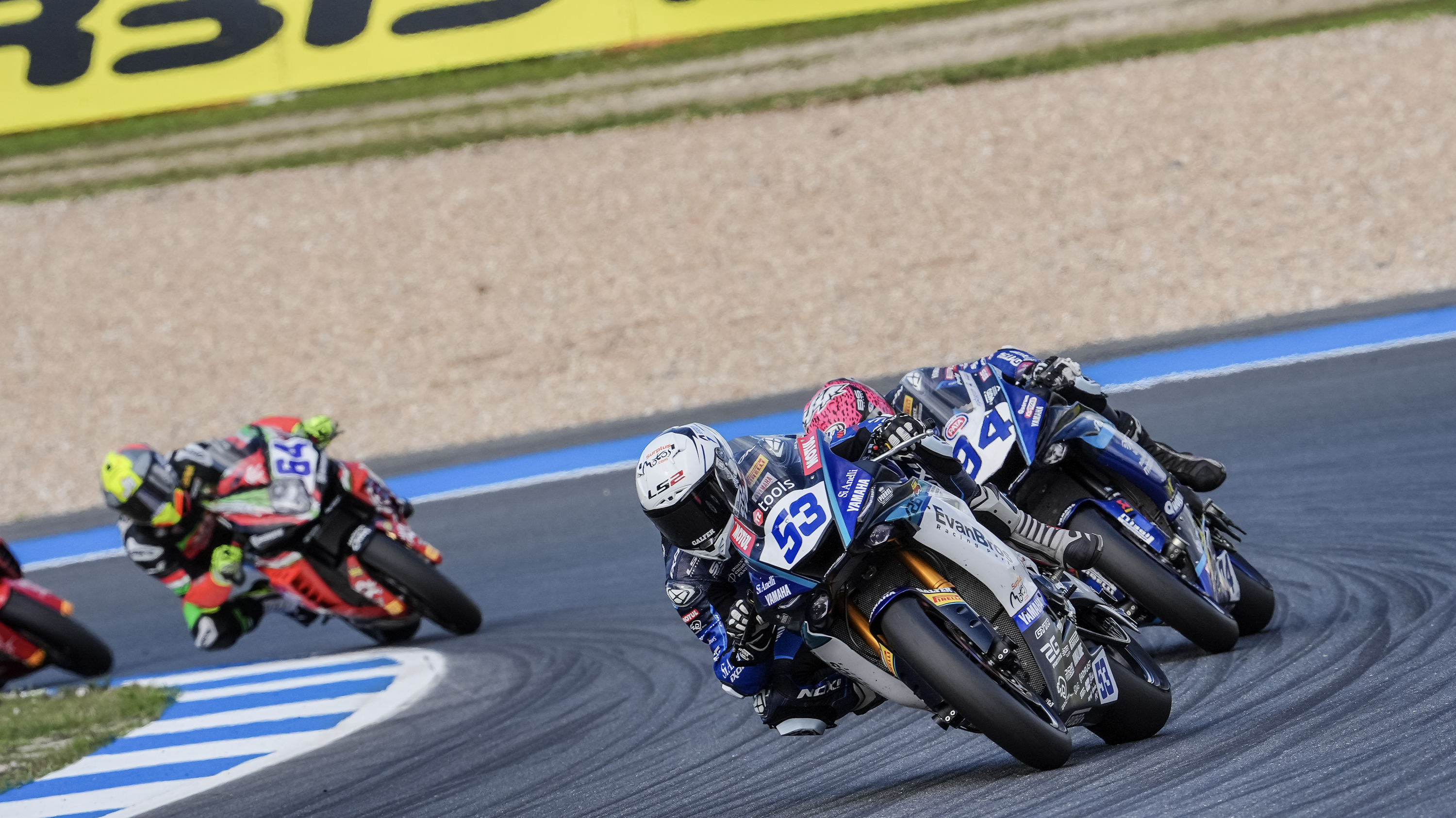 Die Spannung stieg, als sich das Rennen in Estoril weiterentwickelte, und es war die Nummer 99 von Huertas, die den Druck auf seine Meisterschaftsrivalen erhöhte, als er auf einen Podiumsplatz vorrückte und den Ducati-Frontmann jagte. Weiter hinten in der Spitzengruppe kam es zu einem französischen Duell, als Debise und Mahias um den vierten Platz kämpften und auf der vier Kilometer langen Strecke zahlreiche geschickte Überholmanöver zeigten.