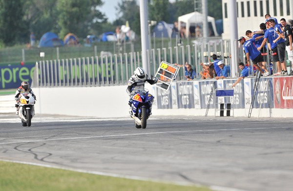Spain's Nacho Calero Perez (Orelac Racing Yamaha) was a clear third, but behind him a four-rider fight eventually saw Davide Fanelli (All Service System by QDP Honda) hold off his rivals in a thrilling fashion and take fourth place. In the championship, Guarnoni now has 111 points, with Marino on 86 after five rounds.