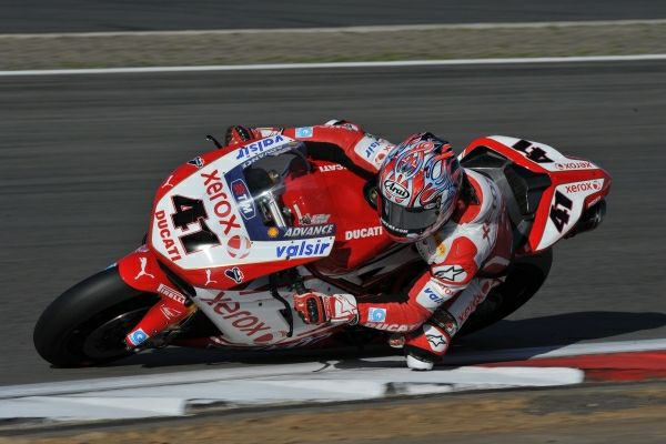 "First of all I want to say how happy I am to be back up here. After the Race 1 crash I went straight back to the garage in the hope that my technicians could adjust the bike so that I could continue but unfortunately there was too much damage to the mufflers and I had to stop there. We made some modifications to the front suspension and the bike behaved a lot better in Race 2. I maintained a strong pace for the entire race and was able to get the job done! I'm sorry for Carlos because it's always great to battle against him. Now I'd like to repeat this great result at Imola, Ducati's home track."