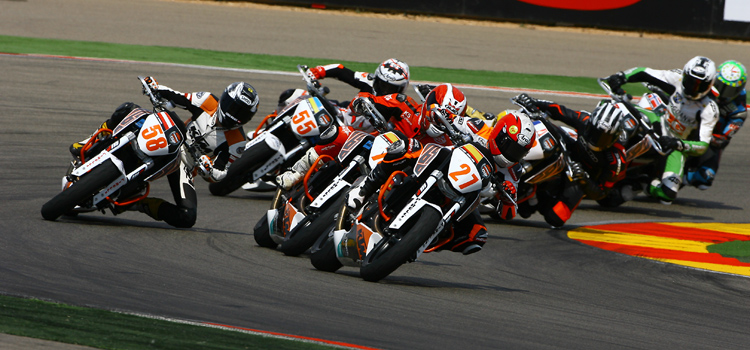 A fantastic finish to the EJC race saw local rider Javier Orellana win from pole man Lukas Wimmer by only 0.040 seconds after eight laps at the long and fast Motorland Aragon Circuit. Gaston Garcia and Christian Vidal, also local Spanish riders followed on behind Austrian Wimmer.