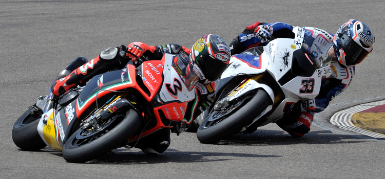 The top two were well clear of the battle for third, which eventually went to Carlos Checa (Althea Racing Ducati) from Chaz Davies (ParkinGO MTC Aprilia). Tom Sykes (Kawasaki Racing Team) was deprived of what looked like a sure podium place when Ayrton Badovini (BMW Motorrad Italia GoldBet) lost the front and his machine hit Sykes' rear wheel, and both riders fell.