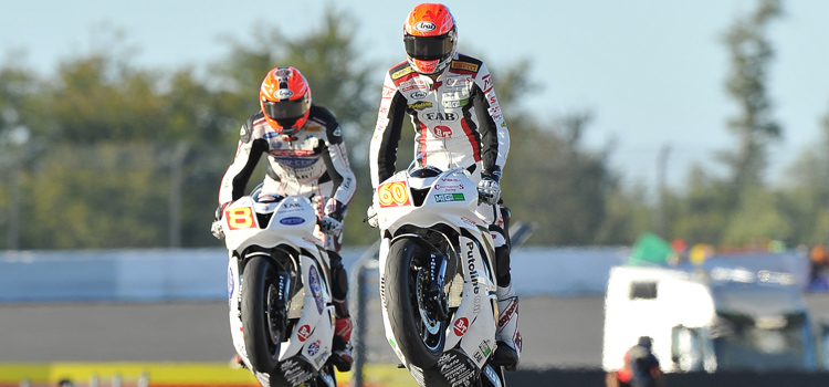 Michael Van der Mark (EAB Ten Kate Junior Team Honda) set a new lap record of 2 minutes 02.736 seconds to win the ten-lap UEM Superstock 600 European Championship race at the Nürburgring, and in doing so take the lead in the championship, all despite riding with a plate and screws in his recently injured collarbone.