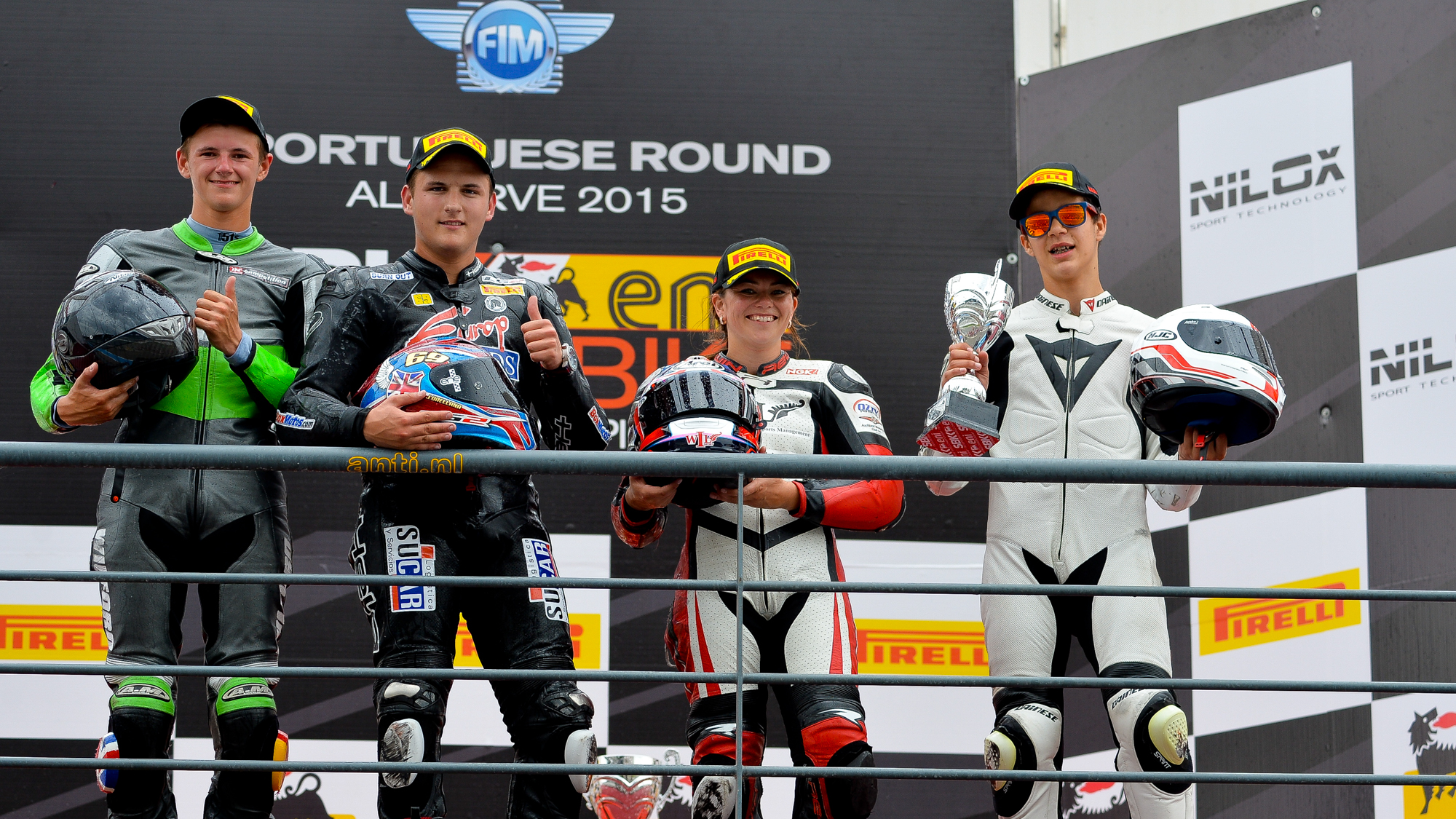 Starting 2nd, Orellana who has now won 4 of the 5 races so far this year fought hard throughout the 6 lap race, (reduced after an initial red flag for a turn one crash involving several riders), eventually came out on top ahead of Pole setter Sam Wilford (IDWe Racing) and Portuguese wildcard rider Pedro Nuno (Honda Portugal), the trio split by 0.593s at the flag.