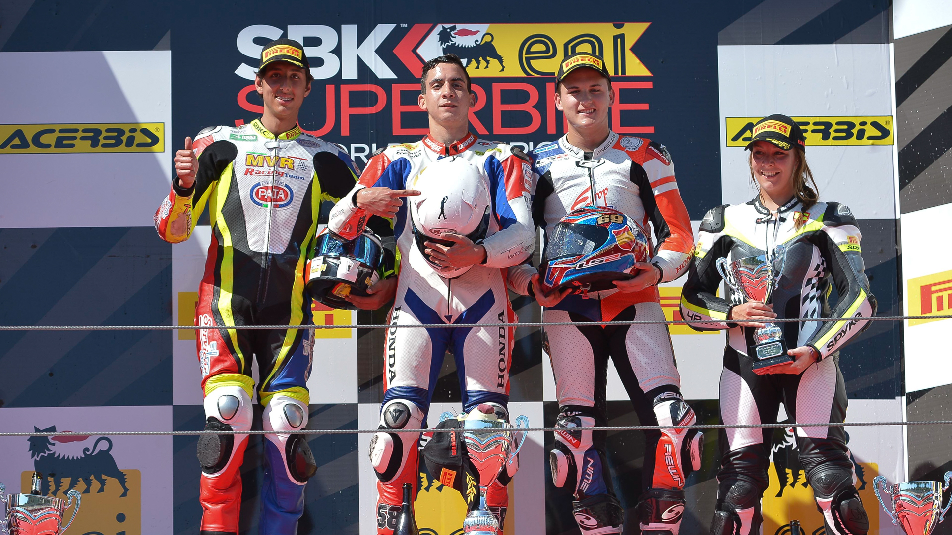 Emanuele Pusceddu (SK & Itaba Moto) has won the Imola race of the Pata European Junior Cup, powered by Honda, which took place after a restart caused by a multiple crash. The young Italian moved off well from Pole Position and led each of the six laps to cross the line with a 2.8s margin over Paolo Grassia (MVR Team Racing), who snatched second place from series leader Javier Orellana (Europ Foods). Hungarian Victoria Kis claimed victory in the Women’s European Cup.