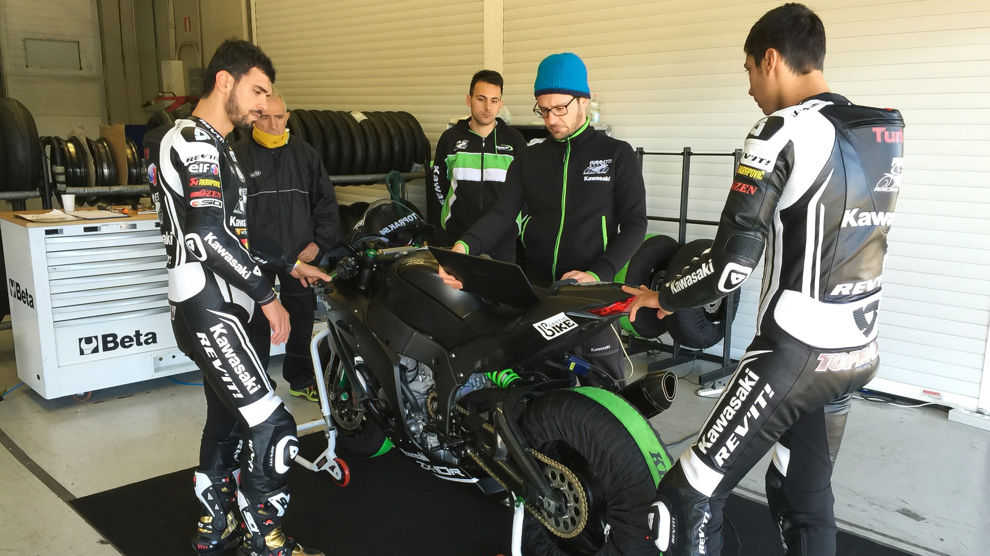 Away from the top category, Kawasaki Puccetti Racing were hard at work as FIM Supersport World Champion Kenan Sofuoglu shared the garage with Swiss rookie Randy Krummenacher for the first time. The DS Junior Team was also busy with sole representative Ilya Mikhalchik, while MV Agusta reunited with Jules Cluzel who returned to his WorldSSP machine for the first time since his September crash.