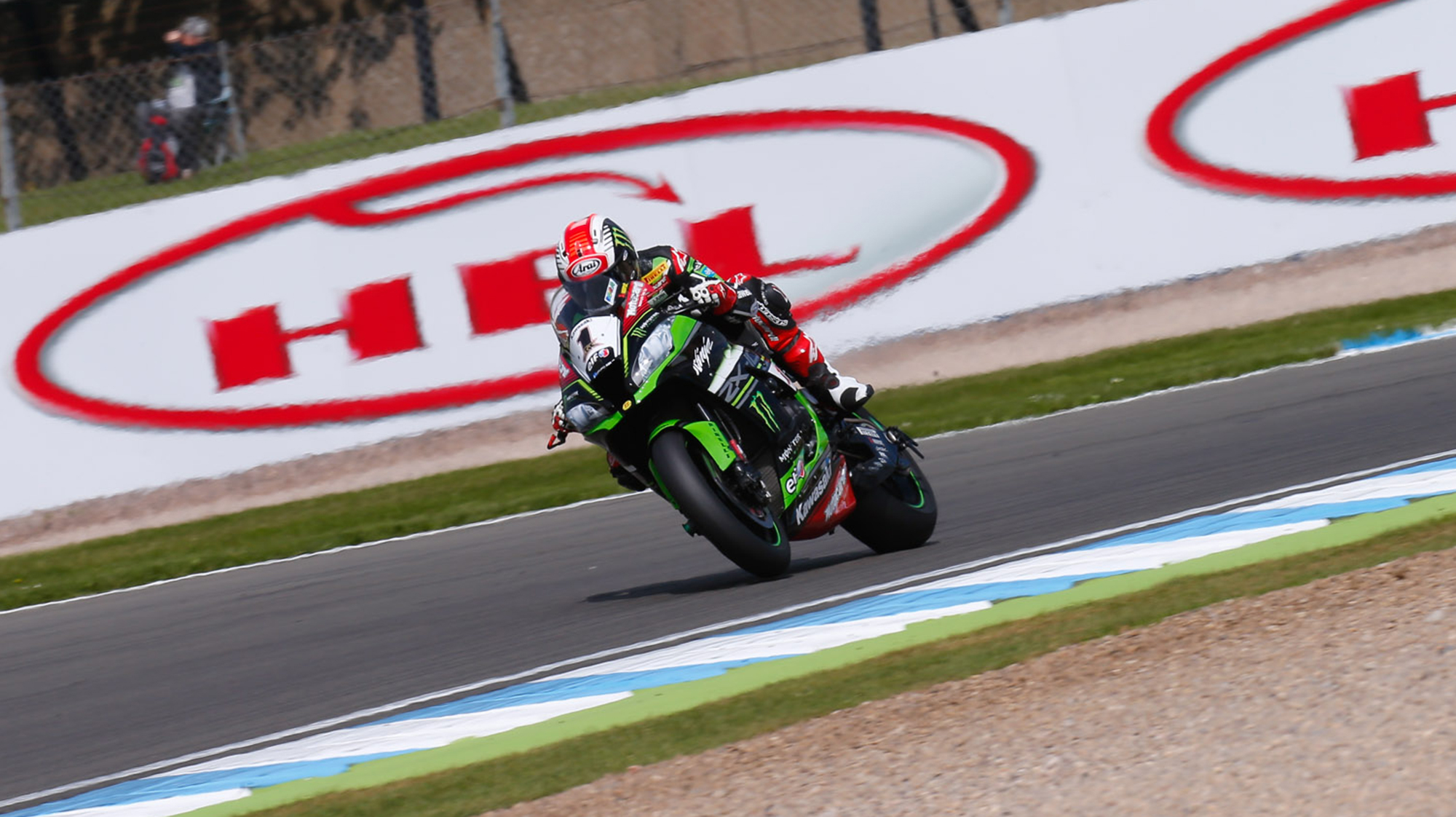 A Kawasaki 1-2 ended Day 1 at Donington as the Derbyshire skies remained sunny for the first track time of the Acerbis UK Round. 2013 WorldSBK Champion Tom Sykes put in the fastest lap of the day to lead from his teammate as the Ninjas headed the laptimes, ahead of Davide Giugliano on the first Aruba.it Racing – Ducati in P3.