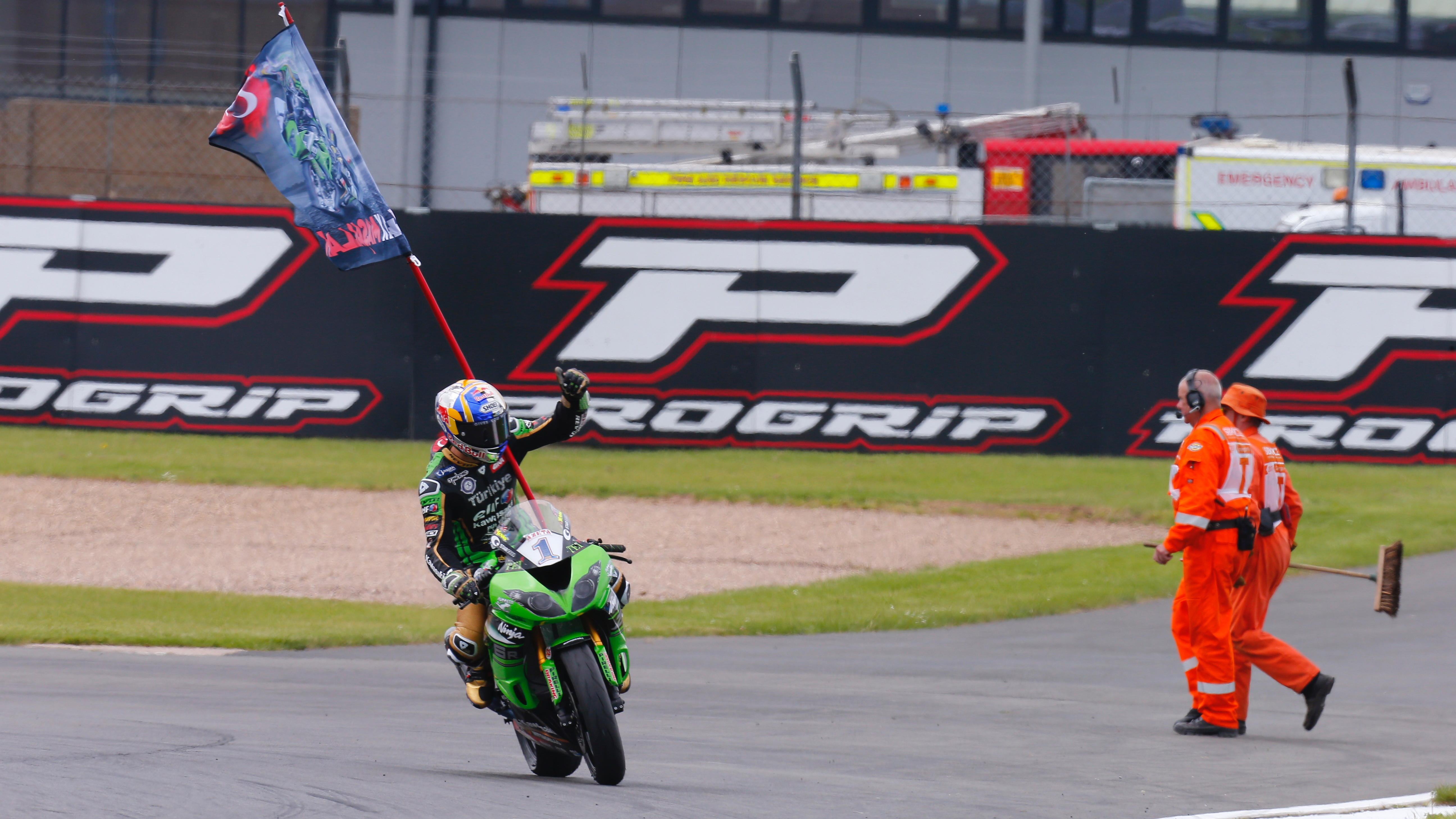Kenan Sofuoglu (Kawasaki Puccetti Racing) made another big statement of intent in the 2017 WorldSSP championship fight on Sunday afternoon at the PATA UK Round, taking a third win in three races. He was joined on the podium at the Donington Park Circuit by standings leader Lucas Mahias (GRT Yamaha Official WorldSSP Team) and Jules Cluzel (CIA Landlord Insurance Honda).