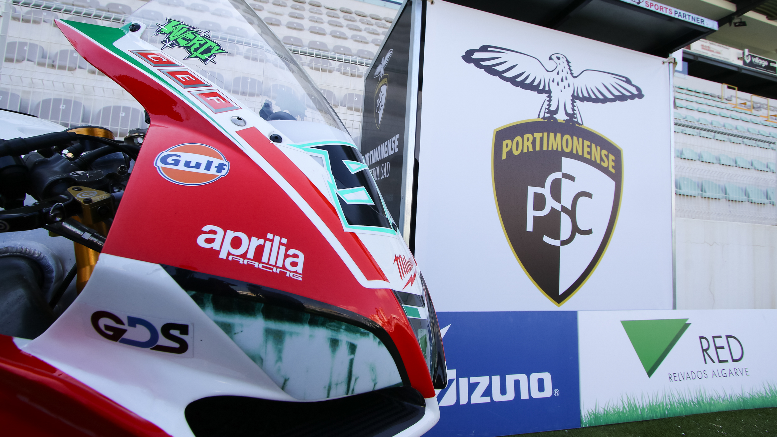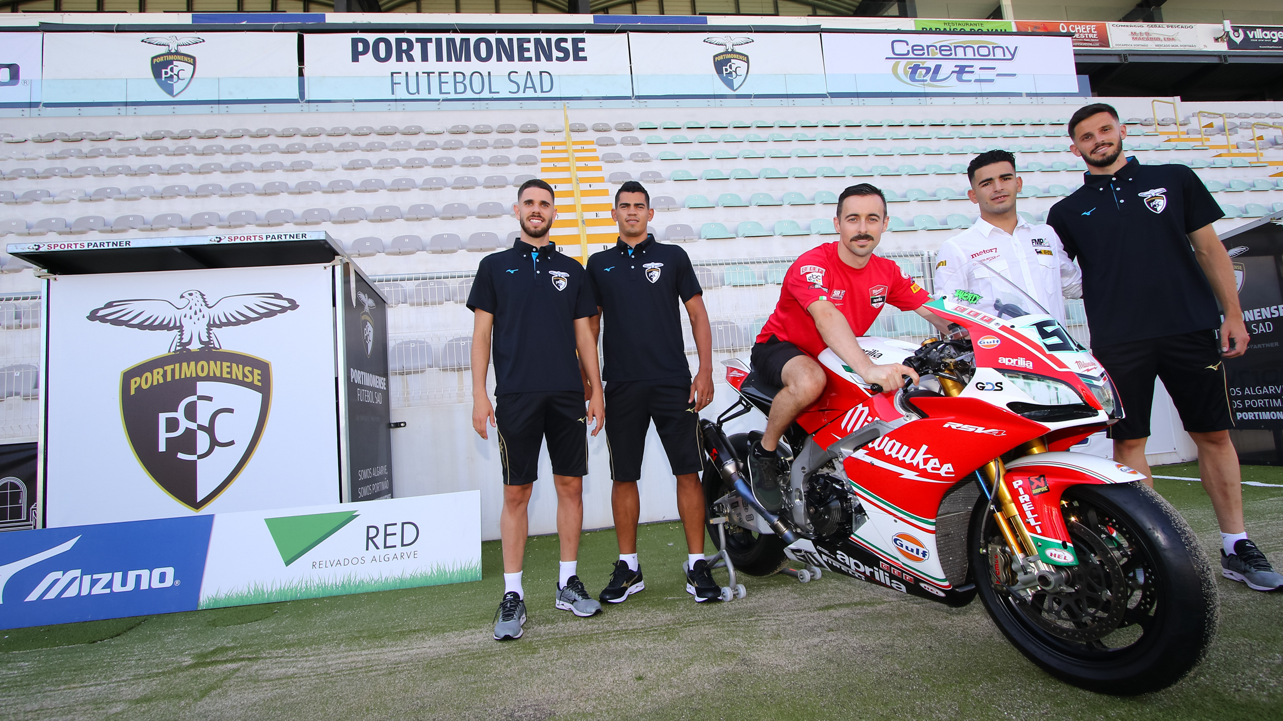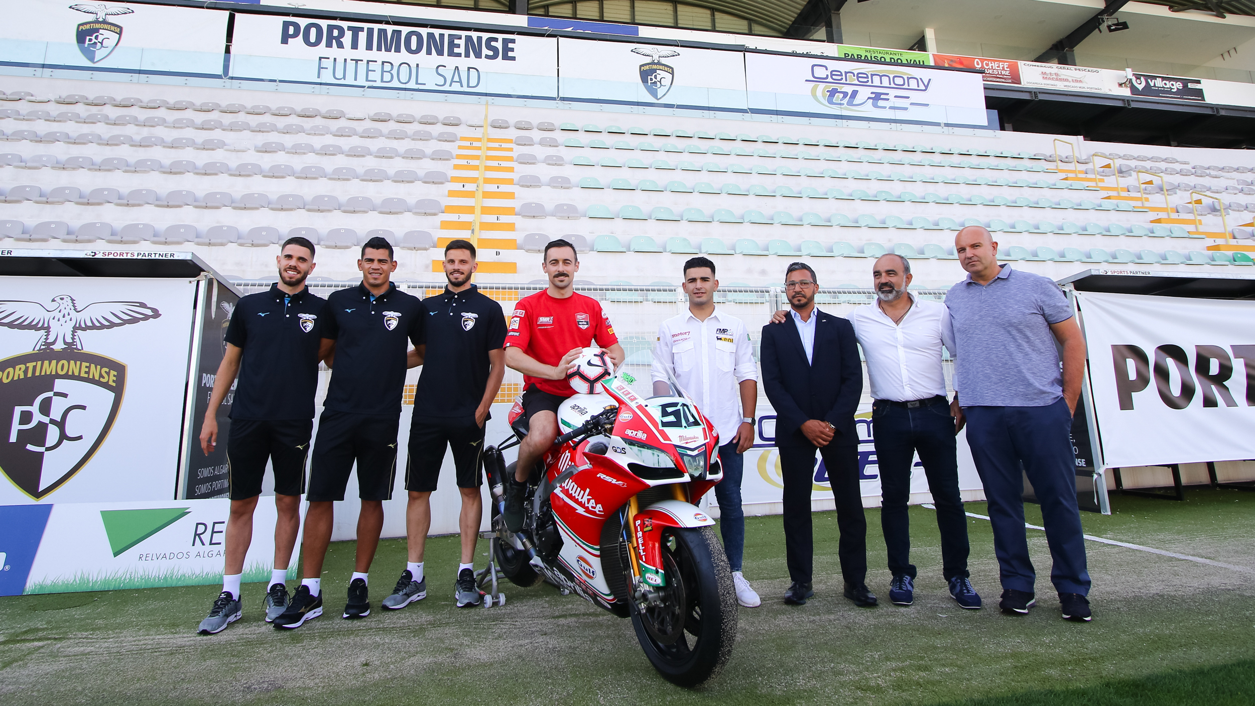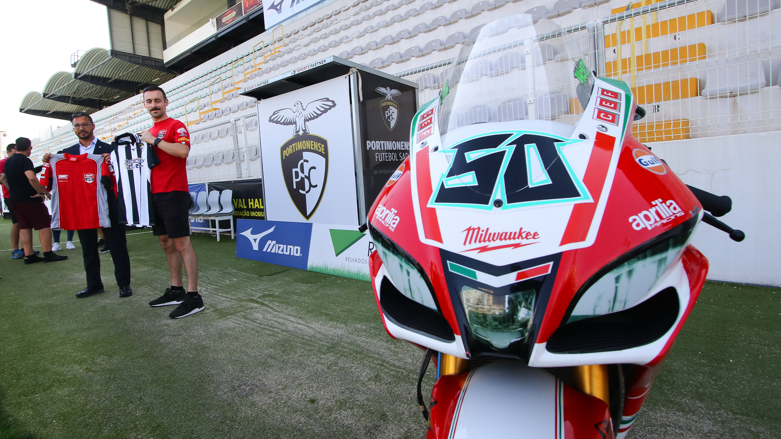 The Irishman took his #50 Aprilia RSV4 to the stadium of Primeira Liga team Portimonense Sporting Clube and met up with several team players on the pitch itself, as well as with Portimonense’s president. The club originates from and plays its matches in Portimao, only a few miles away from the Autodromo Internacional do Algarve where the Nolan Portuguese Round will take place this weekend.