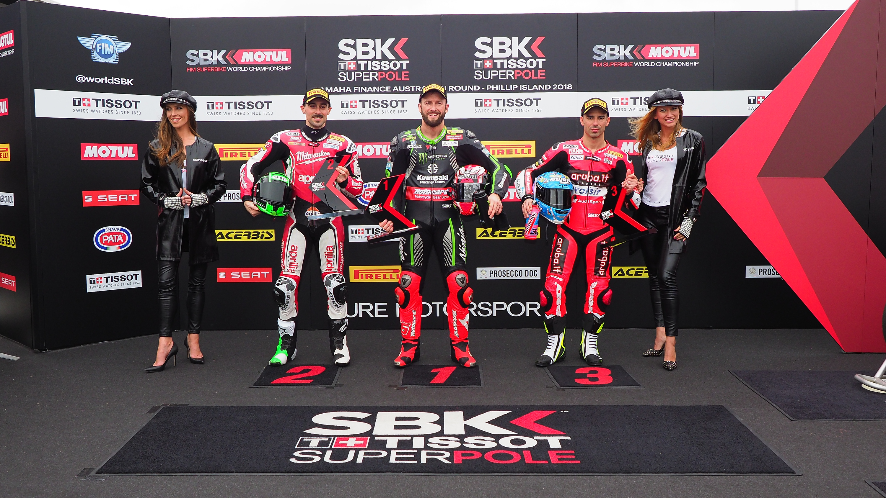 Tom Sykes (Kawasaki Racing Team) has taken the first pole position of the year at Phillip Island, lighting up the Australian venue with red sectors to take his 43rd pole position and equal Aussie legend Troy Corser. The Yorkshireman is joined on the front row by Eugene Laverty (Milwaukee Aprilia) – who was third fastest on Friday – and Marco Melandri (Aruba.it Racing – Ducati).