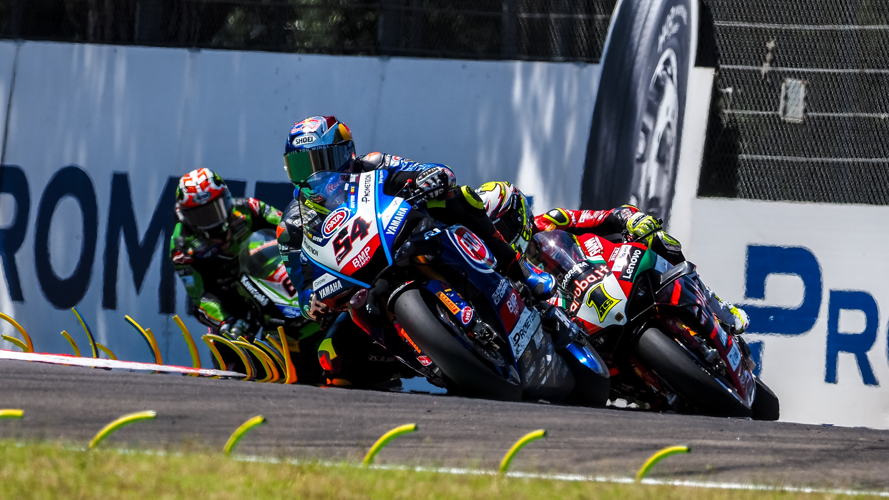 The opening laps were a sensational fight in front of the passionate Italian fans as two Italian riders led their first laps of the season. Andrea Locatelli (Pata Yamaha Prometeon WorldSBK) got the holeshot from second and led until the final chicane on Lap 2, when Axel Bassani (Motocorsa Racing) overtook his compatriot. At the start of Lap 3, Bassani had a huge wobble through Tamburello which dropped him down to fourth, before Jonathan Rea (Kawasaki Racing Team WorldSBK) went through at the Variante Alta at Turn 4.