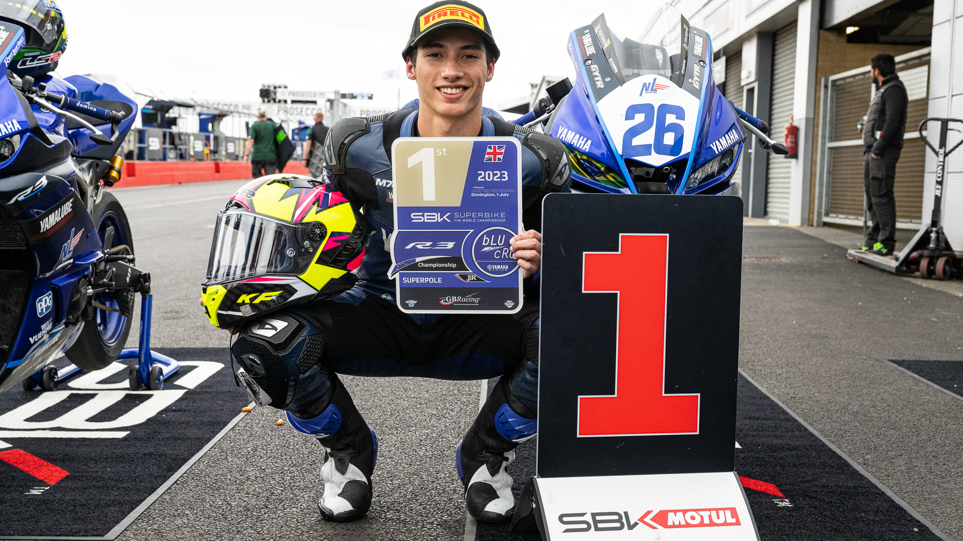 Despite tough conditions, Brazil’s Kevin Fontainha charged through to take his second pole of the season at Round 4 of the Yamaha R3 bLU cRU European Championship at the classic Donington Park circuit in Great Britain.