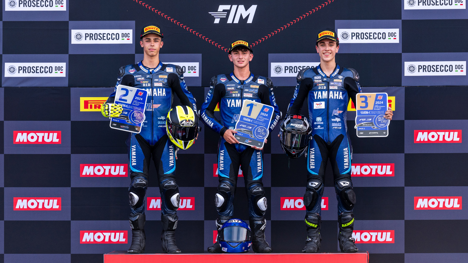 Alessandro Di Persio said: “Donington is a difficult track to learn, I tried hard from free practice onwards to study the more experienced riders and I worked with my team and the bLU cRU staff to understand the best way to ride. Yesterday I was very happy to achieve a podium here, especially with the changing conditions, but today it feels incredible to win. When I started from pole today I told myself ‘this time I’ll win’ and when I saw Marc (Vich) exceed track limits I knew I had it. A huge thanks to my family, my team and everyone at Yamaha.”