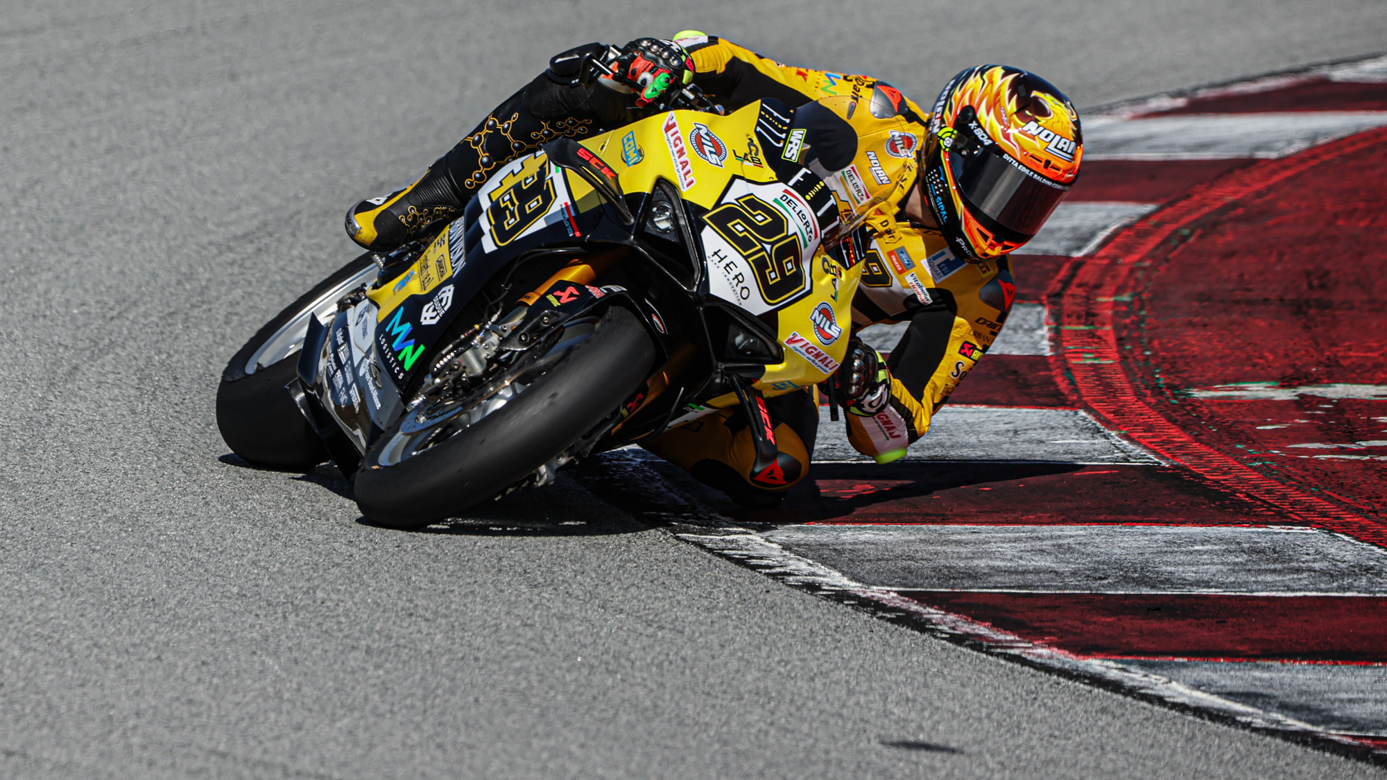 Bulega was once again under a lap record as he set a 1’40.172s to snatch top spot away from Danilo Petrucci (Barni Spark Racing Team) initially, with the #9 running in P1 until Bulega usurped him with around 45 minutes left to go under the existing record of 1’40.264s set by his teammate last year in the Tissot Superpole session. Despite Petrucci’s strong pace, two technical problems earlier in the day as well as a crash when on course to improve his time disrupted the Barni Ducati rider’s plans. He was able to show impressive speed across a range of tyres, initially moving up to fourth on the standard SCX but with the new front tyre from Pirelli before he was usurped by Bulega. Alvaro Bautista (Aruba.it Racing - Ducati) put his Panigale V4 R in 16th place, more than a second back from ‘Bulegas’, while Michele Pirro, for the test team, was also inside the top ten. Bautista had a small crash at Turn 10 in the final stages of the day, with the left-hand corner catching a few riders out.