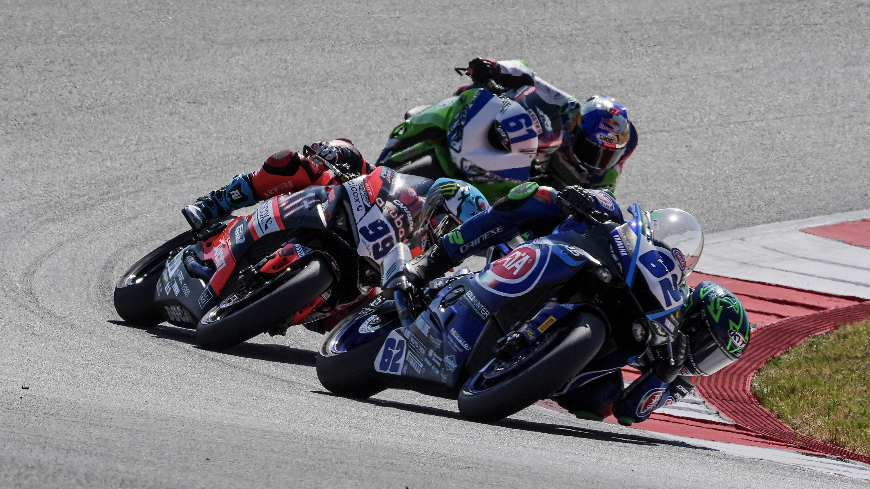 It was a fantastic launch off the line from Montella, who secured the holeshot on the run down to Turn 1. As Montella started strong, so did Manzi, who was able to charge into P2 in the early stages of Race 1. However, Huertas struggled in the early stages, battling for the P3 at the end of the opening lap, before running wide at Turn 1 on Lap 2. The #99 would reclaim his cool, beginning to string together strong laps to overtake Can Oncu (Kawasaki Puccetti Racing) for third before pulling off a brave move at Turn 9 on Manzi.