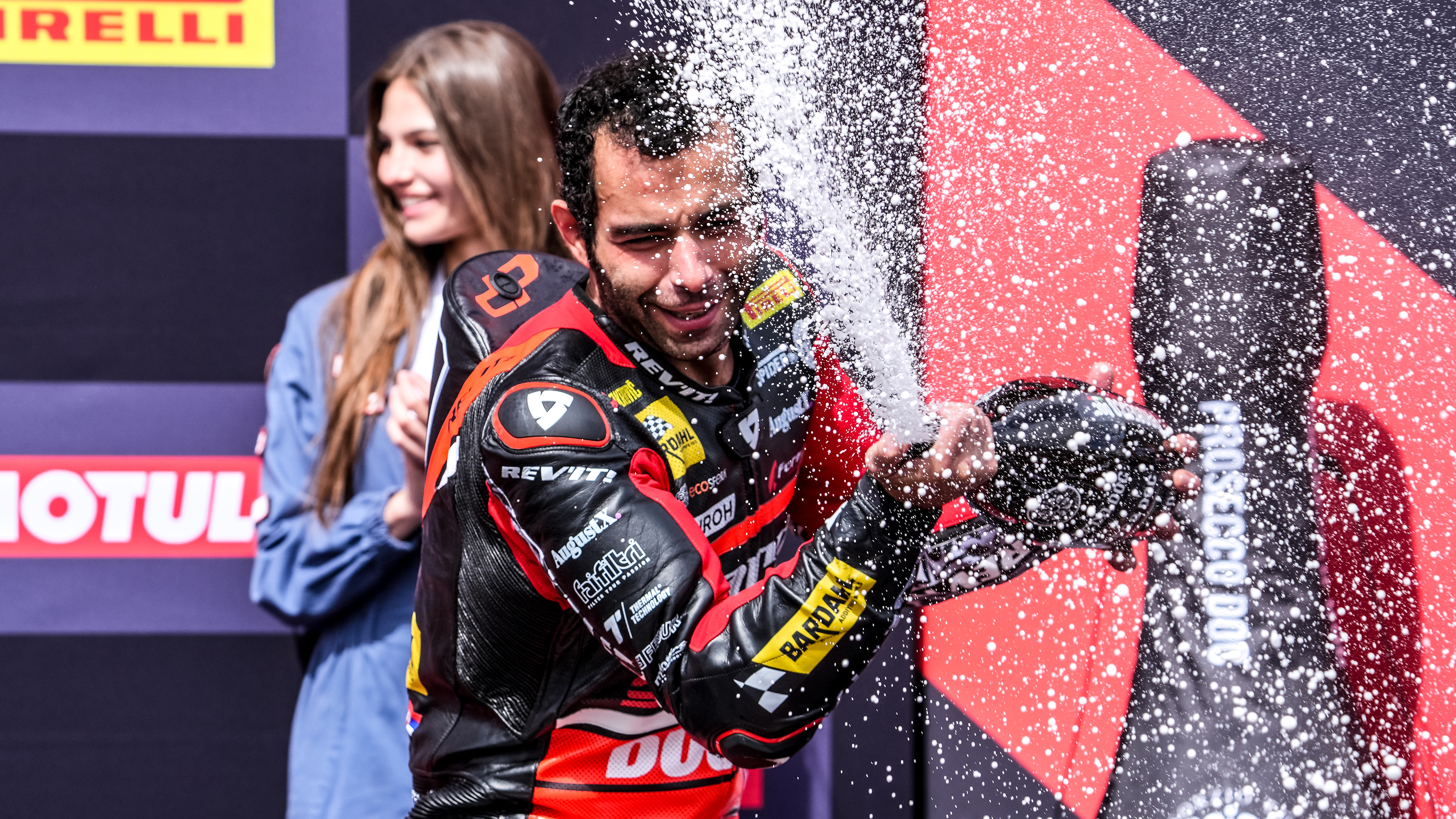 TWO-TIME GRAND PRIX WINNER: ‘Petrux’ victorious in Ducati red