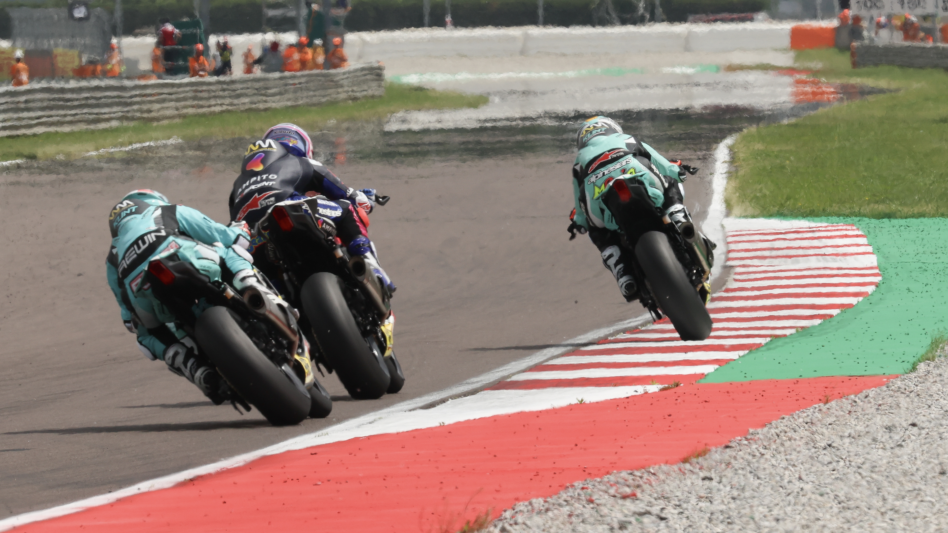 After just two laps, a pack of five riders separated themselves from the rest of the pack, led by Herrera, who rode hard to stay ahead the pack behind her. Beatriz Neila and Roberta Ponziani closed down the distance in the closing laps bit by bit, until the final lap where the pair of riders behind her made their move. In the final turns of the race, Neila passed Herrera on the outside, going bar to bar with Herrera on the switchback, trading paint as Herrera cut inside to regain her P1 spot. The contact was slight, and deemed a race incident by WorldSBK FIM Stewards, however unfortunately for Neila, Ponziani picked her moment well and followed Herrera through to claim P2, shuffling Neila to P3.