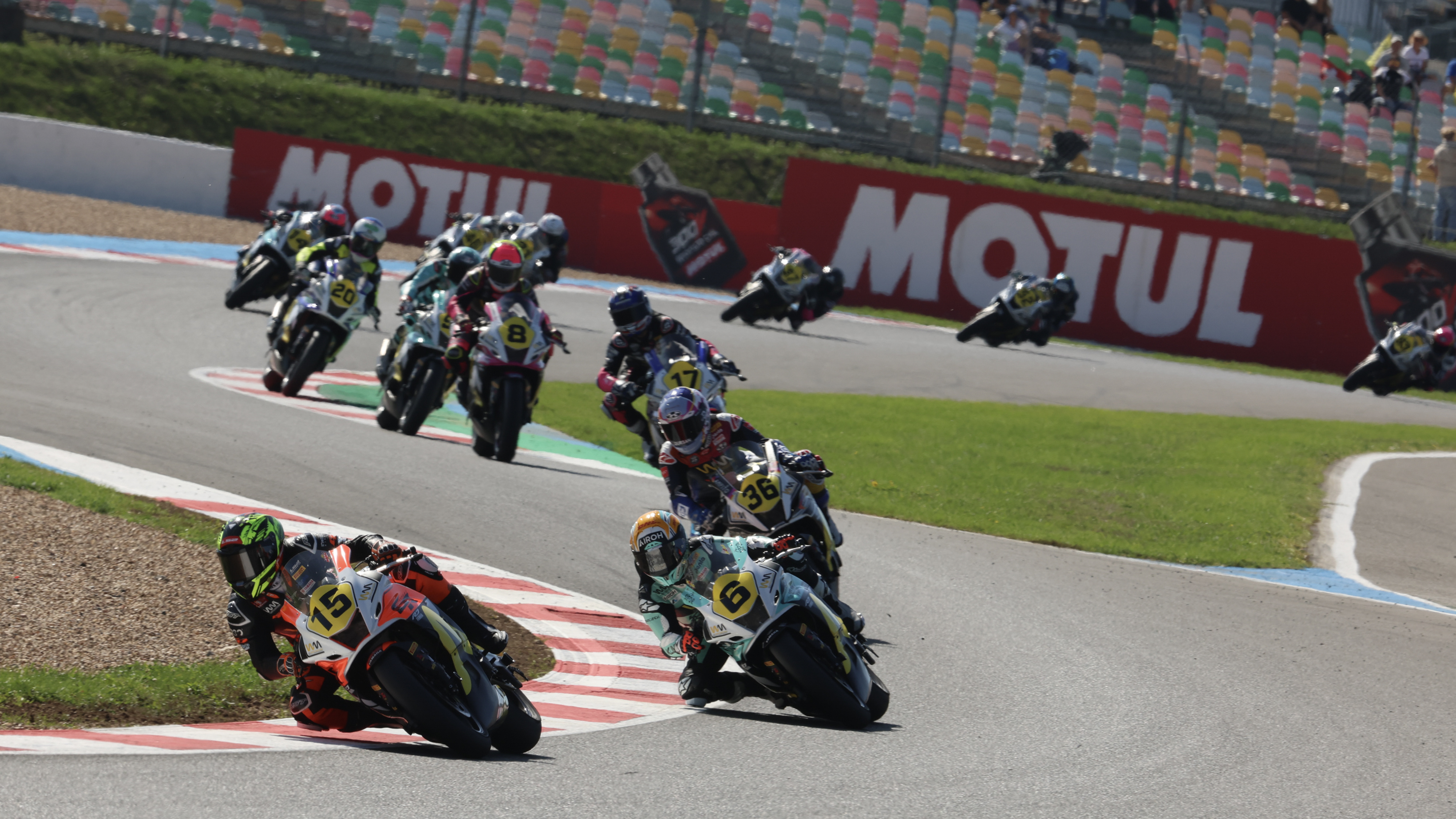 Herrera got out in front for the holeshot into the opening corner, until Jones took back the lead at Turn 5. Beatriz Nelia (Ampito Crescent Yamaha) gave chase behind the pair, closing the gap as the race entered its third lap. Lucie Boudesseul (GMT94-YAMAHA) and Roberta Ponziani (Klint Forward Racing Team) went toe to toe in the first four laps; the pair battled for P4 as they made up the back of the lead group. The pair closed the gap by the halfway point of the race, making it a five-rider free-for-all and going five-wide on the straight in Laps 5 and 6.