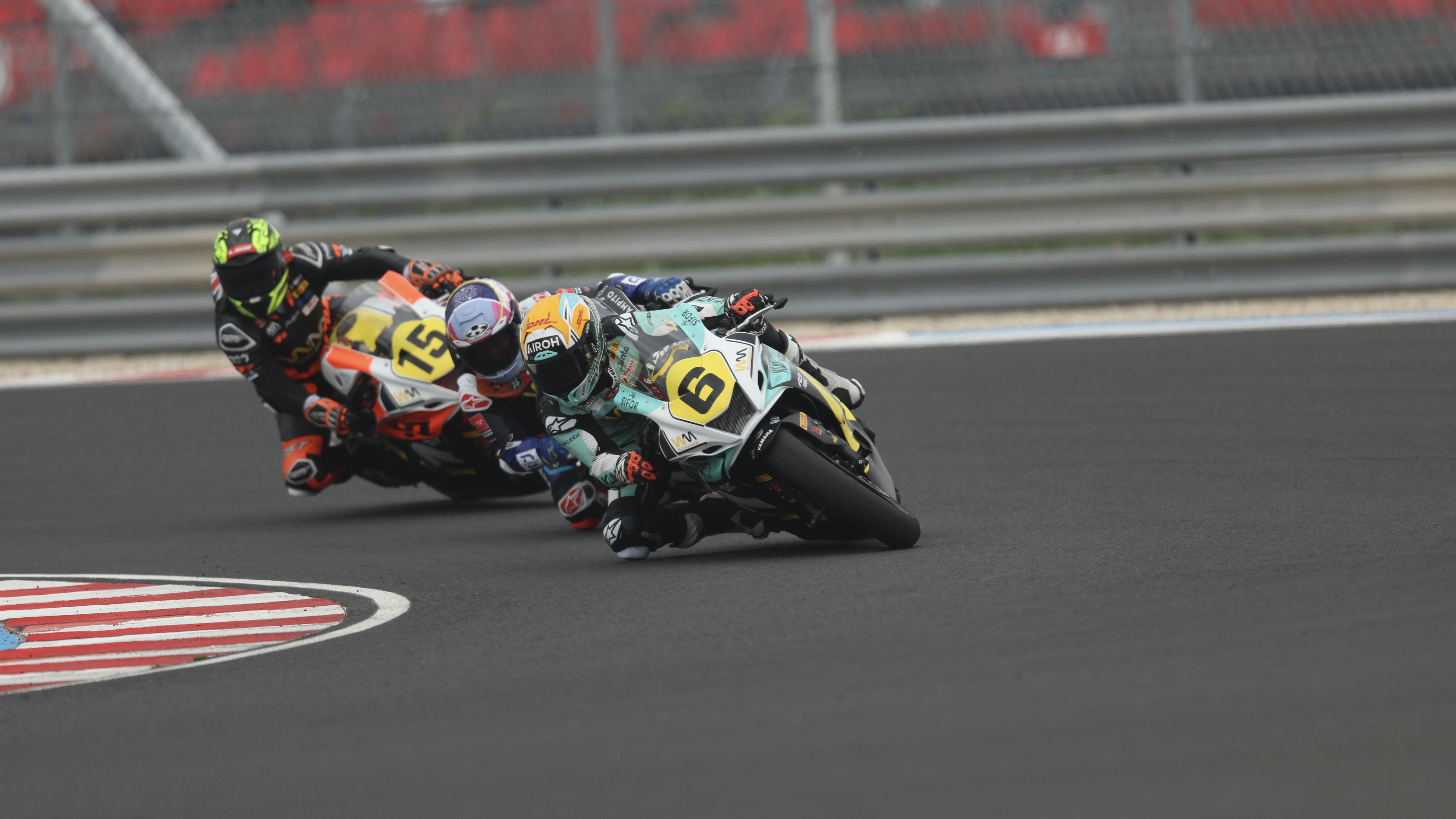 After braking late and running wide to lose several positions to the pack behind her on the entry to the first corner of the race, Sara Sanchez (Terra & Vita GRT Yamaha WorldWCR Team) was unable to catch back up to the trio at the front. From P4, she led Roberta Ponziani (Klint Forward Racing Team) and Pakita Ruiz. Winding down to the final laps, Sanchez and Ponziani pulled away from Ruiz, Ponziani finishing P4 thanks to an overtake with two laps remaining, moving Sanchez to P5. While her pace declined from being able to fight for P4, she finished five seconds ahead of the pack behind her.