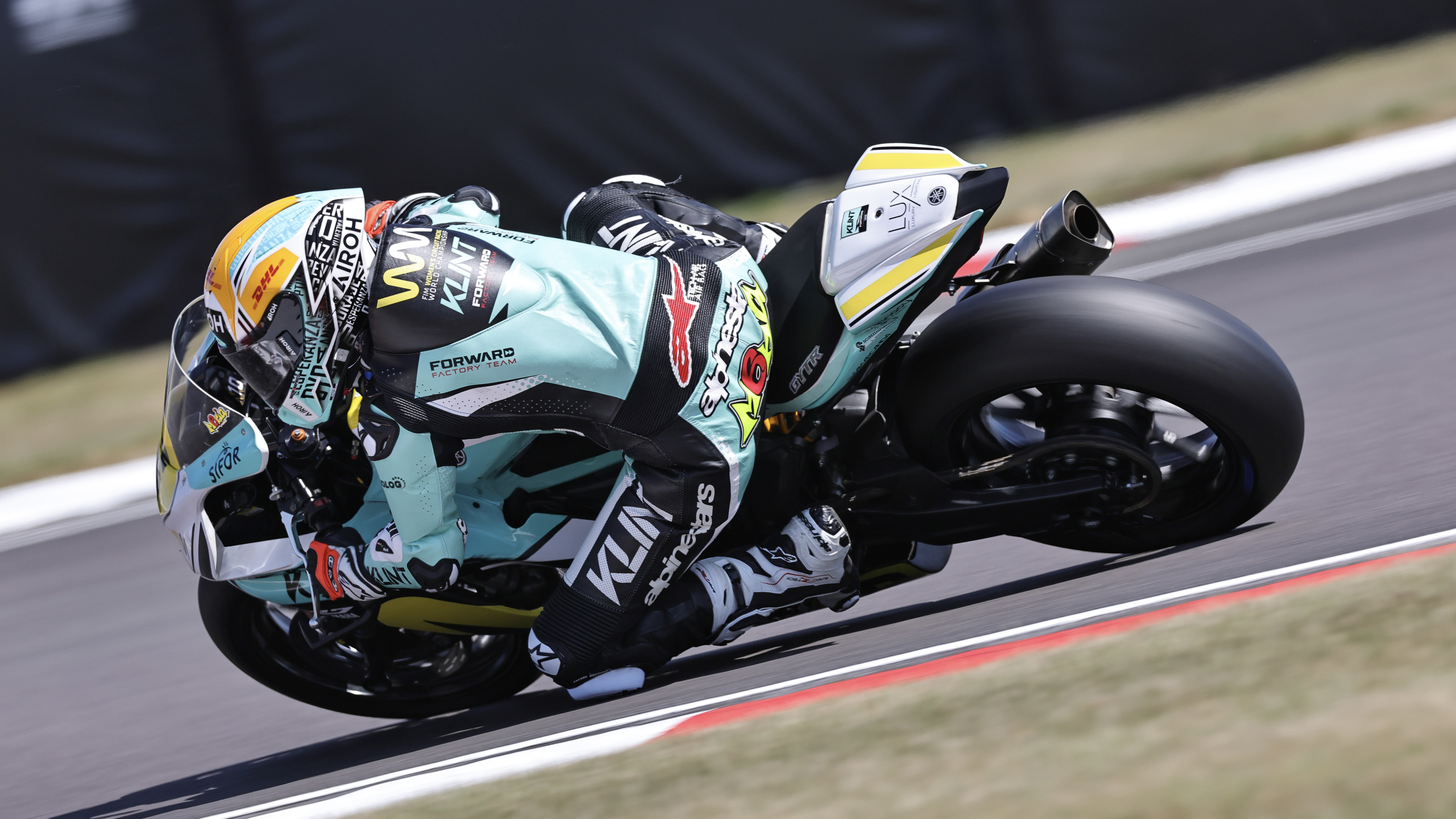 The FIM Women’s Circuit Racing World Championship competitors uncorked the Prosecco DOC UK Round’s racing action as they set the grid for the weekend to come in their Tissot Superpole session. Spending most of the running tied, Neila slipped atop the timesheet after her late lap for her first career pole in the Championship. Just behind her, Maria Herrera (Klint Forward Racing Team) earned P2, ahead of Sara Sanchez (Terra & Vita GRT Yamaha WorldWCR Team) for an all-Spanish front row.