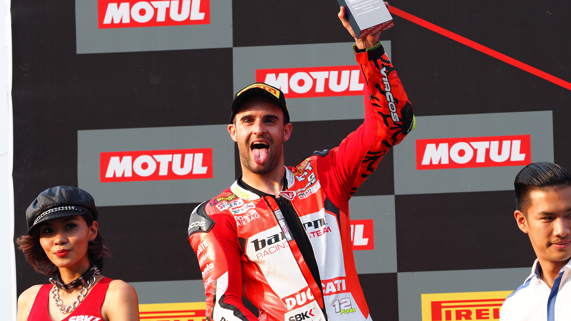 Xavi Forés compite en la actualidad en WorldSBK con una Ducati del equipo Barni Racing Team. El piloto de Lombai lleva 15 temporadas competido al máximo nivel y ha pilotado en todas las categorías, desde WorldSSP a 125cc pasando por Moto2 y MotoGP, donde tuvo un difícil fin de semana de debut, viéndose obligado a retirarse del Gran Premio de San Marino al que acudió como piloto sustituto. En WorldSBK Forés ha protagonizado grandes actuaciones y los mandos de su Ducati Panigale R está brillando en este 2018, obteniendo podios y luchando por la victoria en más de una ocasión.