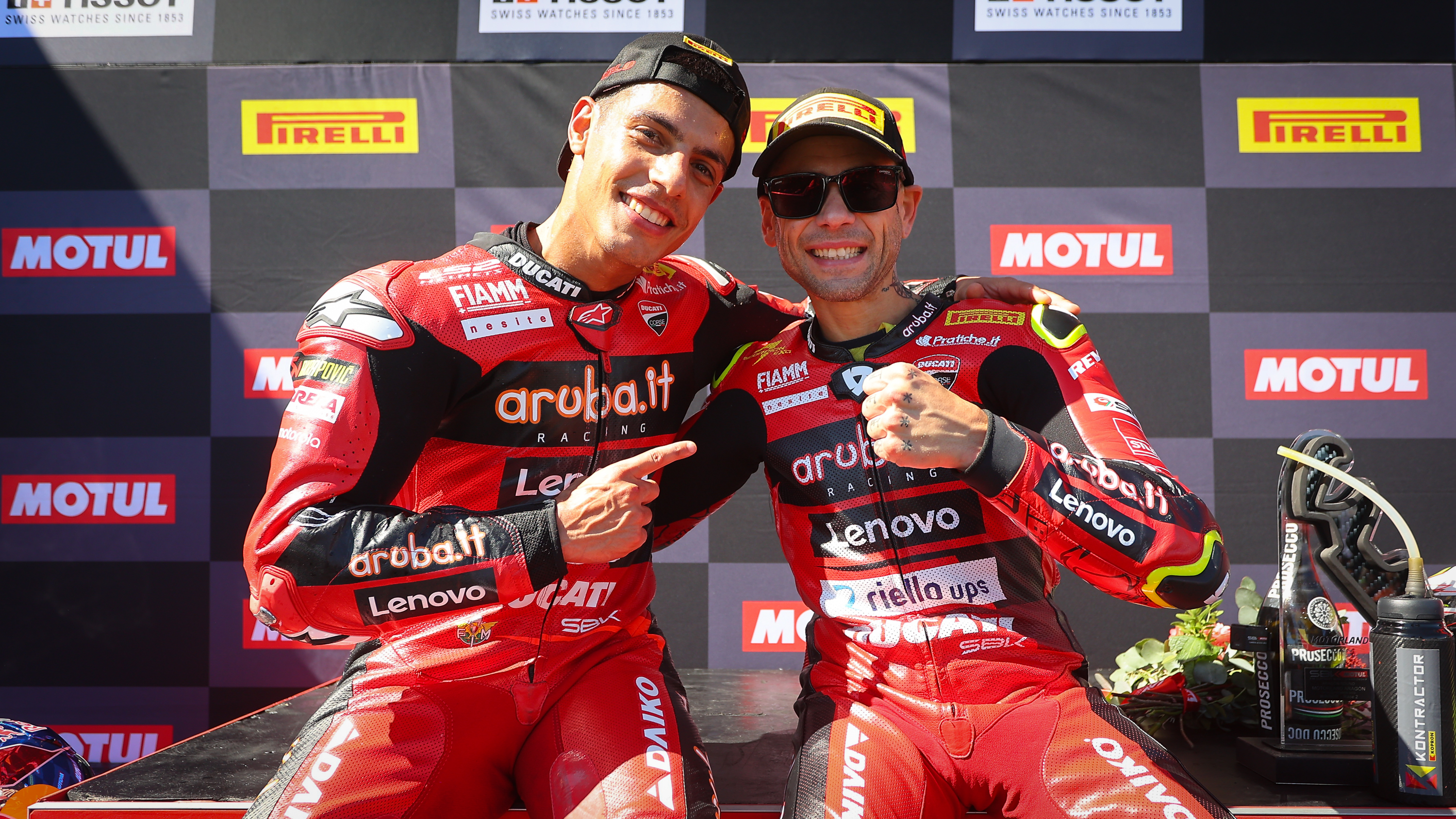 Dos años después de su última victoria, Michael Ruben Rinaldi (Aruba.it Racing - Ducati) regresó el sábado en la Carrera 1 al escalón más alto del podio. Se benefició de la caída de su compañero, pero su ritmo de carrera y su consistencia fueron insuperables y batió a Toprak Razgatlioglu (Pata Yamaha Prometeon WorldSBK) y Jonathan Rea (Kawasaki Racing Team WorldSBK) por la victoria. Aunque su ritmo no fue tan rápido, fue más consistente y su caída de neumático fue menor, lo que le permitió adelantar a sus rivales. Dos años y cuatro días después de su última victoria, el #21 volvía a lo más alto.