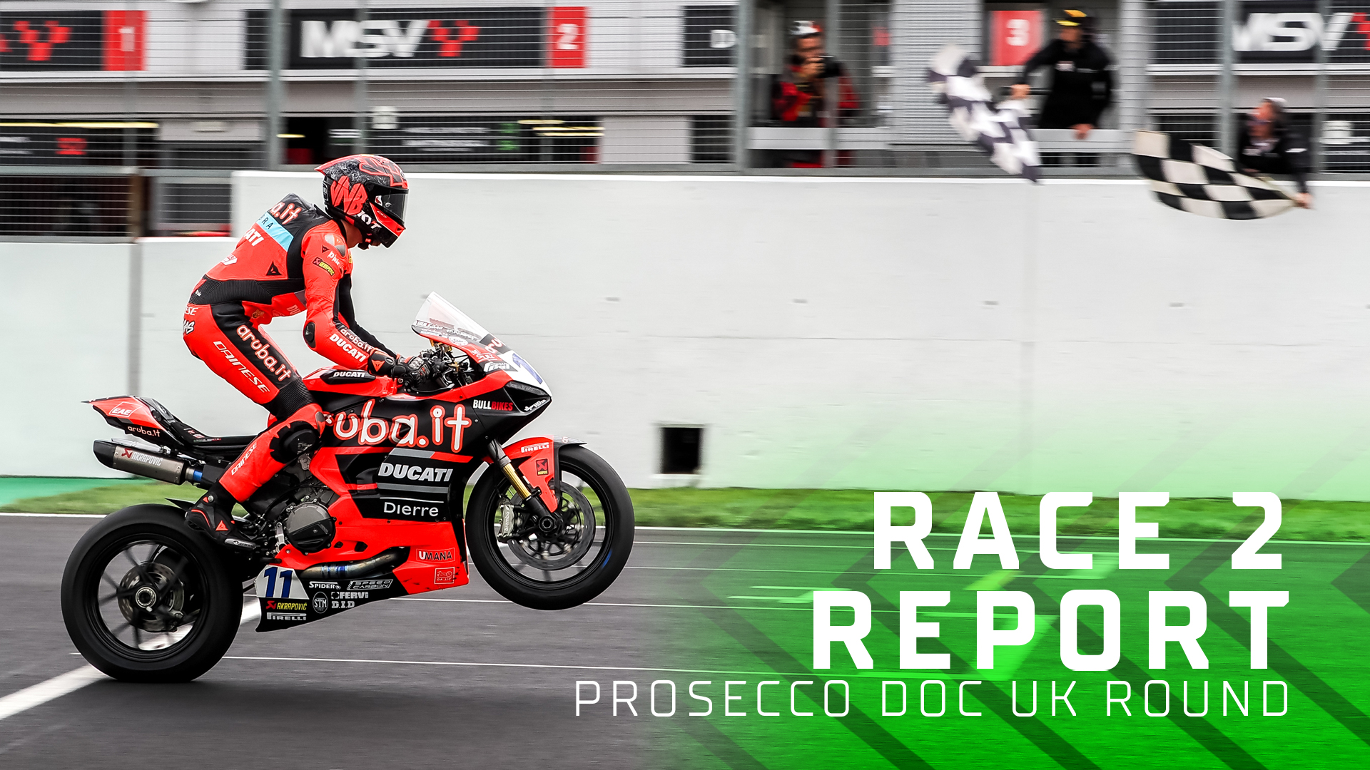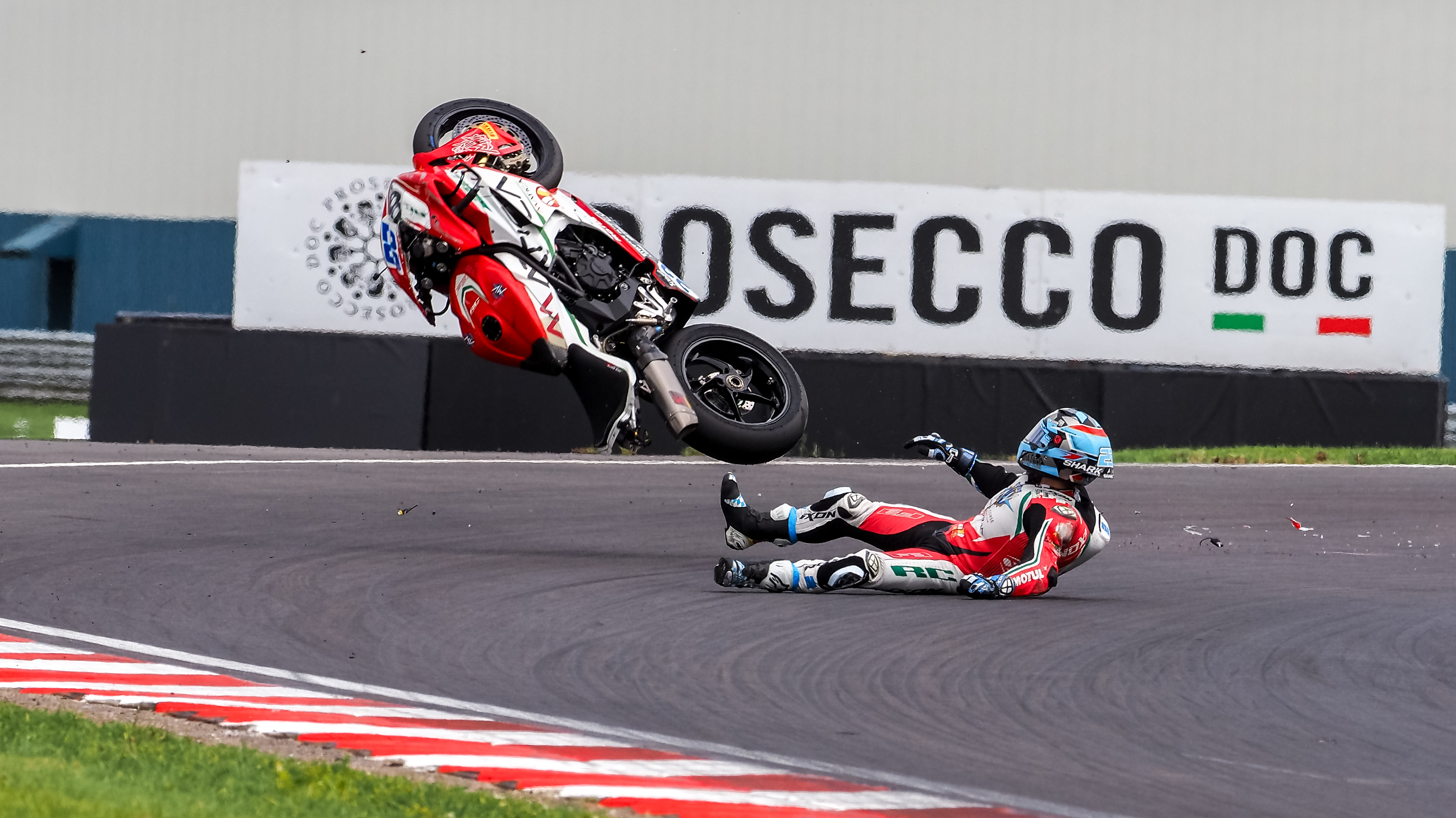 La lucha por el Campeonato del Mundo FIM Supersport dio un vuelco en Donington Park, donde Nicolò Bulega (Aruba.it Racing WorldSSP Team) certificó un doblete y Stefano Manzi (Ten Kate Racing Yamaha) tuvo un día de altibajos al terminar quinto tras una caída y una penalización. Adrián Huertas (MTM Kawasaki), cuarto, consiguió su mejor resultado en la categotía. Por primera vez en la historia, el podio en el Round Prosecco DOC del Reino Unido estuvo formado por tres pilotos de Ducati.