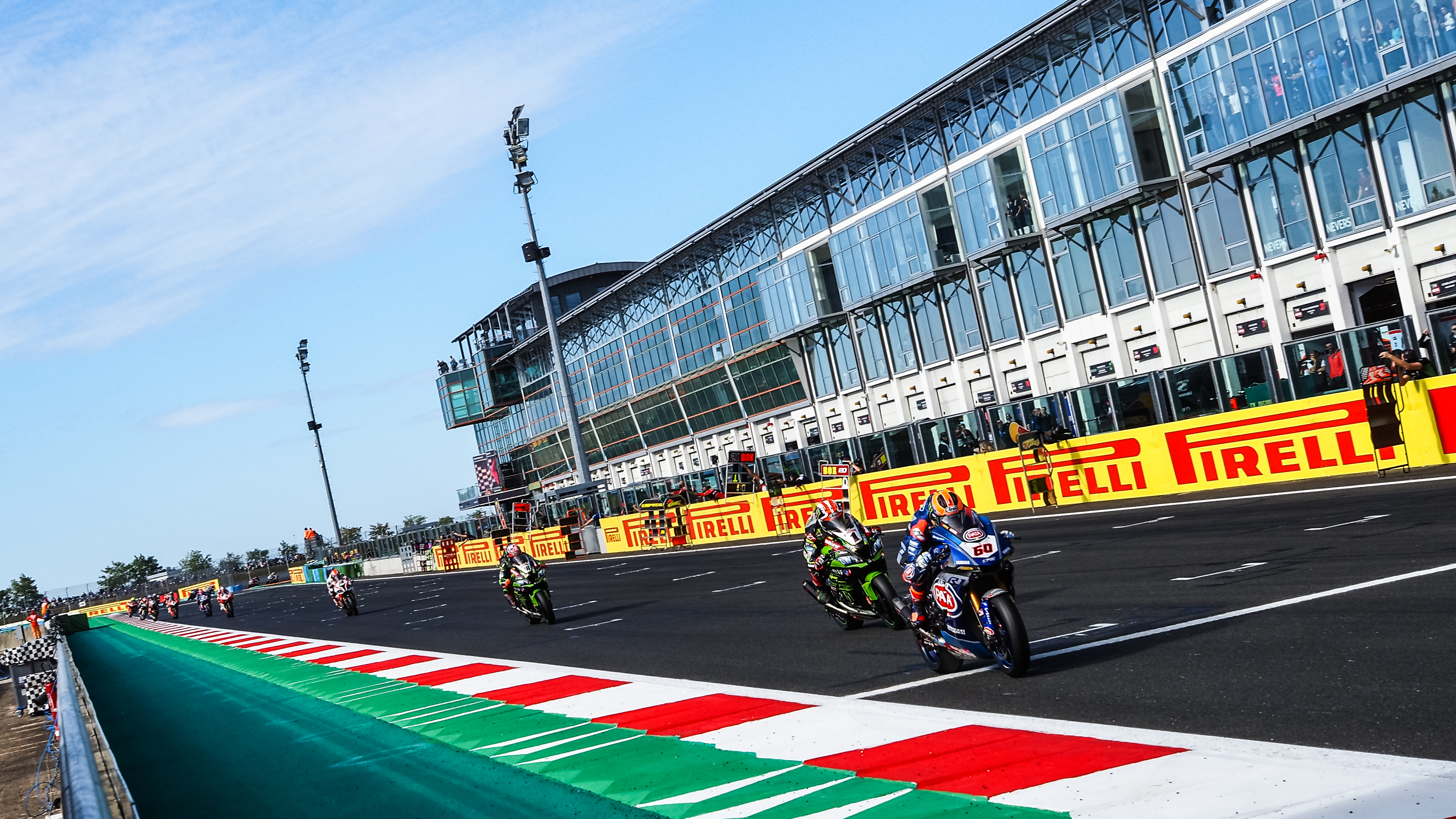 Les pilotes du WorldSBK ont été accueillis par le soleil dimanche matin sur la grille de départ de la Course Tissot-Superpole du Round Pirelli de France. Après être parti à la faute samedi, c’est Michael van der Mark (Pata Yamaha Official WorldSBK) qui a viré en tête au premier freinage devant le duo du Kawasaki Racing Team, Jonathan Rea et Leon Haslam.