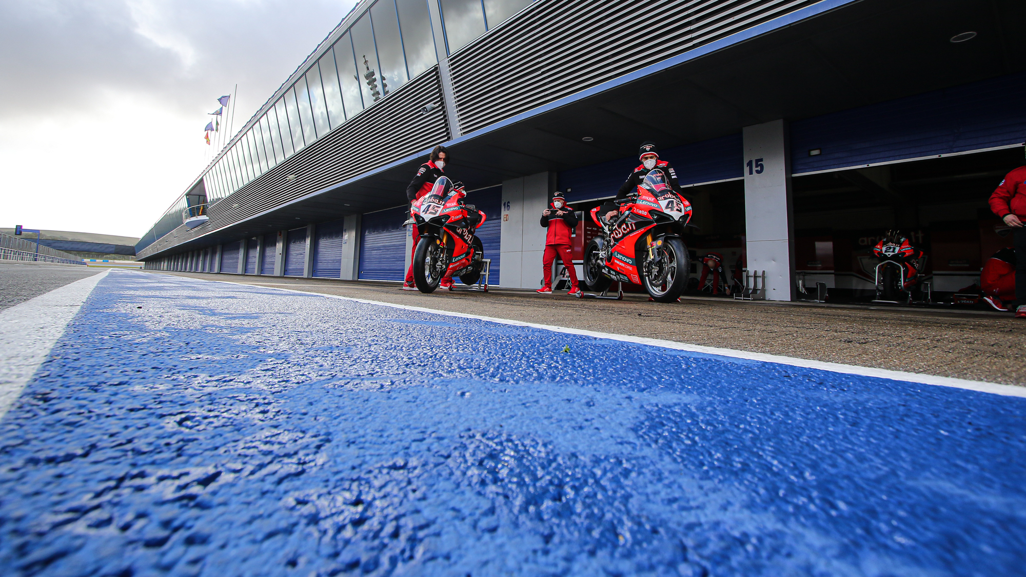 L’équipe ARUBA.IT Racing - Ducati était l’autre équipe d’usine présente à Jerez, mais, comme le HRC et le KRT, elle a choisi de rester au box. L’équipe a remporté la couronne par équipes 2020 avec la Ducati Panigale V4 R et cherchera à rivaliser pour le titre avec Redding et Rinaldi.