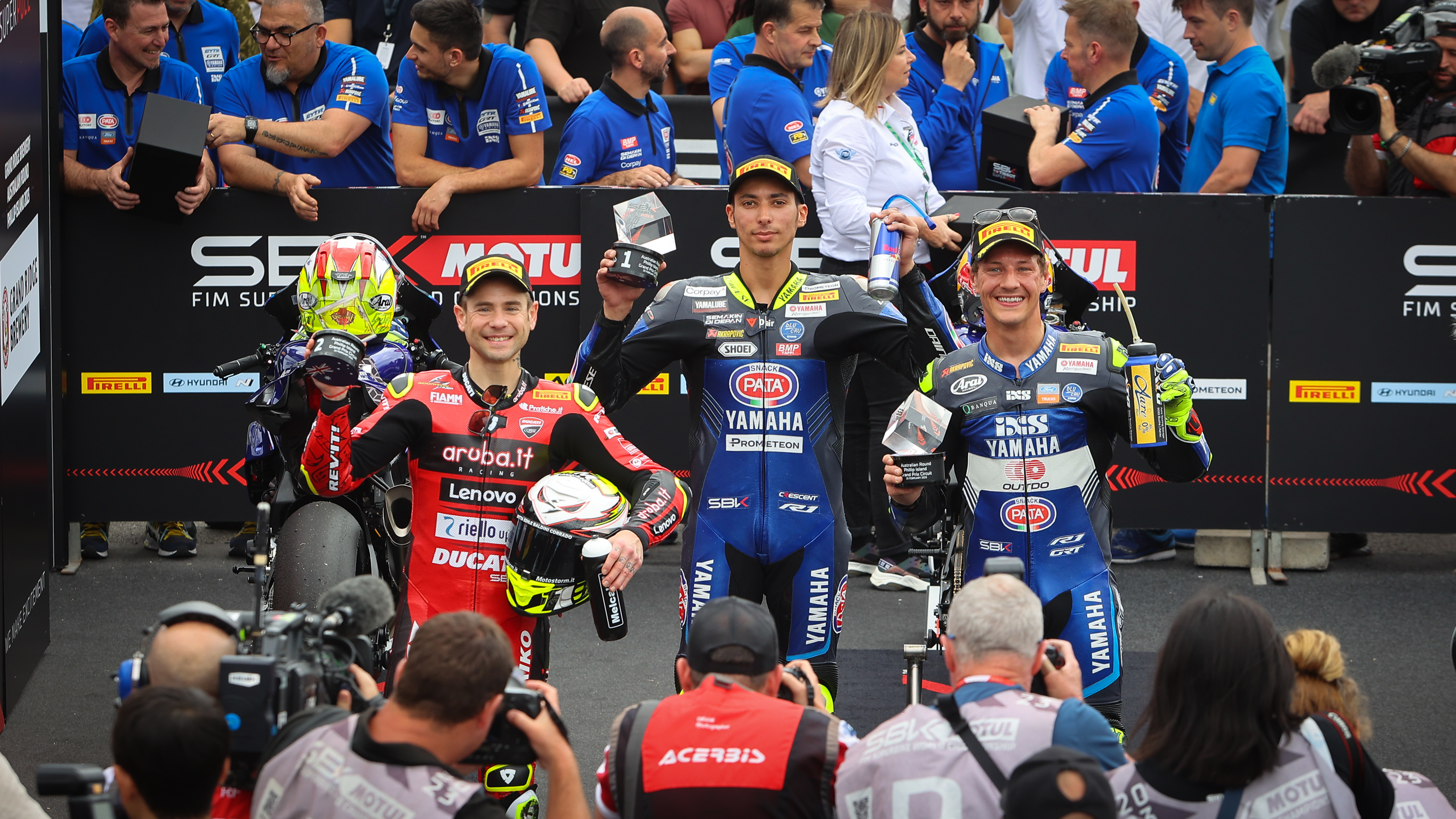 Malgré des nuages très sombres, la pluie s’est calmée en amont de la séance, mais les températures au sol comme dans l’air étaient bien inférieures à celles de vendredi, ce qui a permis à un plus grand nombre de protagonistes de se mêler à la lutte. Iker Lecuona (Team HRC), leader de la FP3, a d’abord pris la piste devant son coéquipier Xavi Vierge, tandis qu’Andrea Locatelli (Pata Yamaha Prometeon WorldSBK), pilote Yamaha le plus rapide lors du Test Officiel et de la première journée du Round Grand Ridge Brewery d’Australie, devançait son coéquipier Toprak Razgatlioglu. Après les premiers tours, Michael Ruben Rinaldi (Aruba.it Racing - Ducati) s’est hissé en tête devant Alvaro Bautista, Alex Lowes (Kawasaki Racing Team WorldSBK), Locatelli et Phillip Ottl (Team GoEleven).