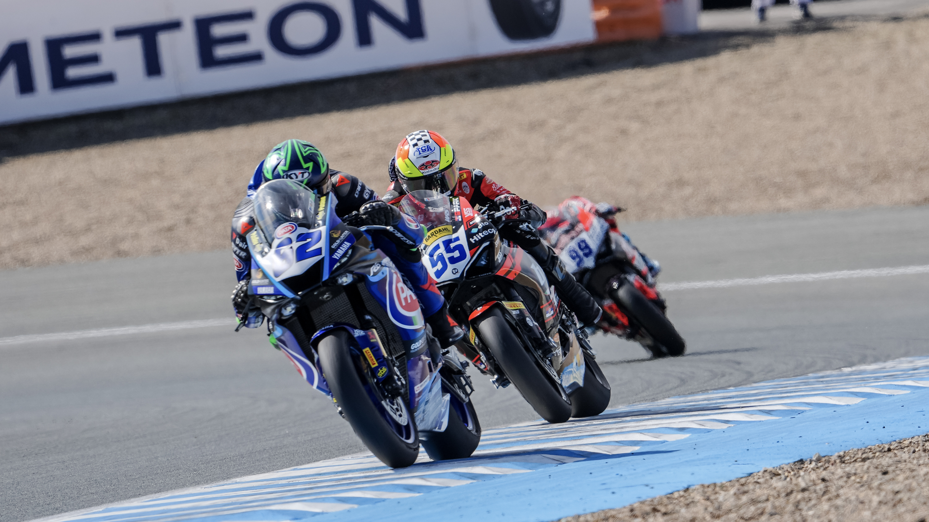 Jorge Navarro (Orelac Racing VerdNatura) était en course pour le podium, devant la Ducati #99 en cinquième position, à 14 tours de l'arrivée. Sa course a cependant été écourtée, car il a été éliminé au virage 13 par Can Oncu (Kawasaki Puccetti Racing), la Kawasaki #61 ayant reçu une double pénalité Long Lap pour l'accident. Huertas est ainsi remonté à la quatrième place, suivi de près par l'Allemand Marcel Schroetter (MV Agusta Reparto Corse). Au fil des tours, le Champion du WorldSSP300 2020 a trouvé un bon rythme, passant à la troisième place et tentant de rattraper Montella. Au fil de la course, Huertas a choisi de rester derrière Montella et a même perdu quelques secondes, pour finalement remporter la couronne 2024 et devenir le premier pilote à remporter à la fois les titres WorldSSP et WorldSSP300.