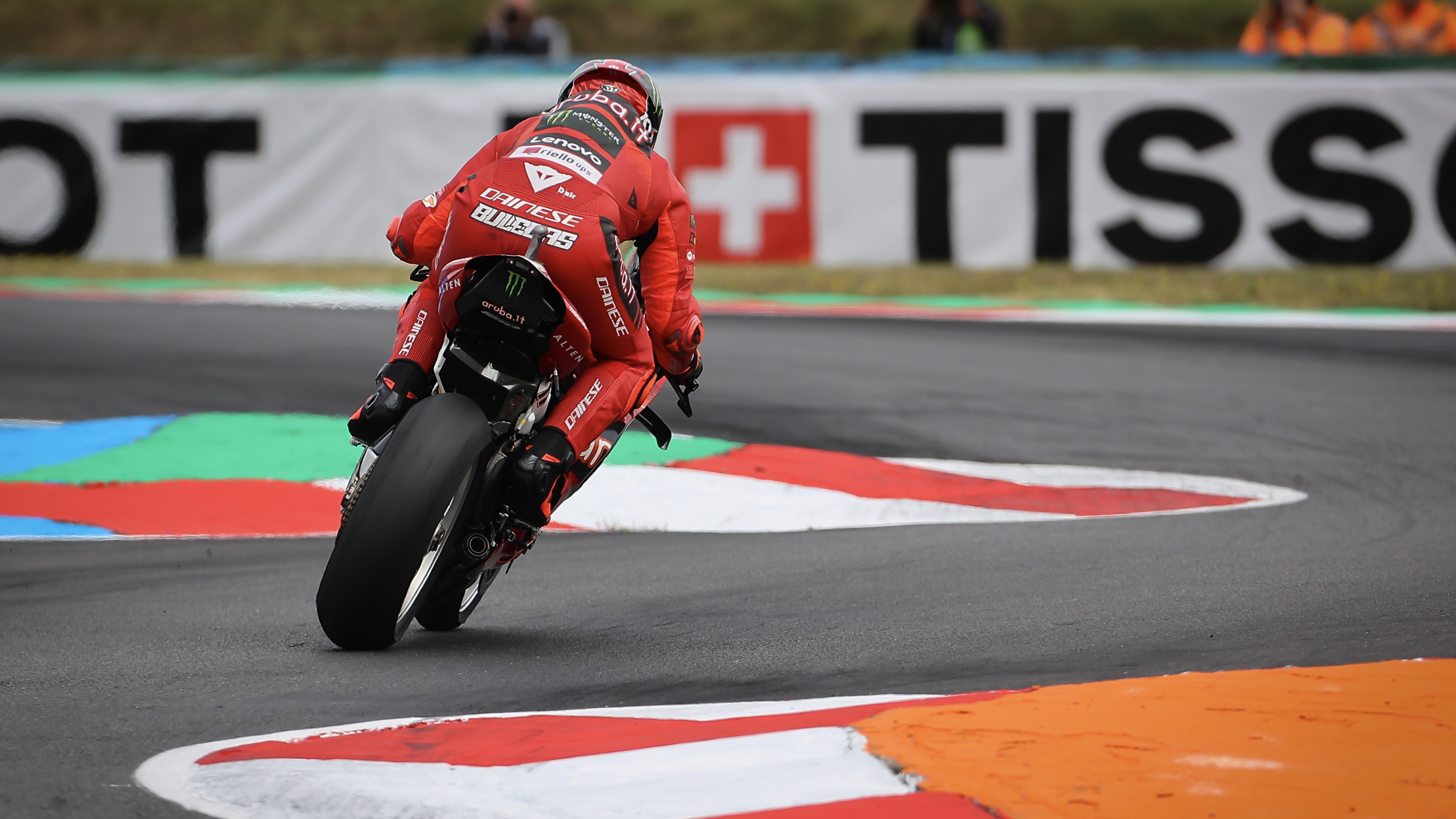 Bulega a été rétrogradé à la deuxième place vendredi après avoir réalisé un 1'36.159s en FP2, alors qu'il semblait pouvoir s'emparer de la première place à quelques minutes de la fin. Il n'était qu'à 0.149s du Néerlandais qui le précédait. Danilo Petrucci (Barni Spark Racing Team) était le plus proche rival de Bulega sur Ducati, en se classant sixième au classement combiné avec un chrono de 1'36.609s, "Petrux" terminant directement devant Alvaro Bautista (Aruba.it Racing - Ducati) après une séance mouvementée de l'Espagnol. Il était quatrième au classement des FP2 lorsqu'il a chuté au virage 8, bien qu'il ait pu remonter sur sa Panigale V4 R et la ramener aux stands pour que ses mécaniciens réparent. Il est revenu en piste dans les dernières minutes et a obtenu la septième place au classement général, à 0.609s de son coéquipier.