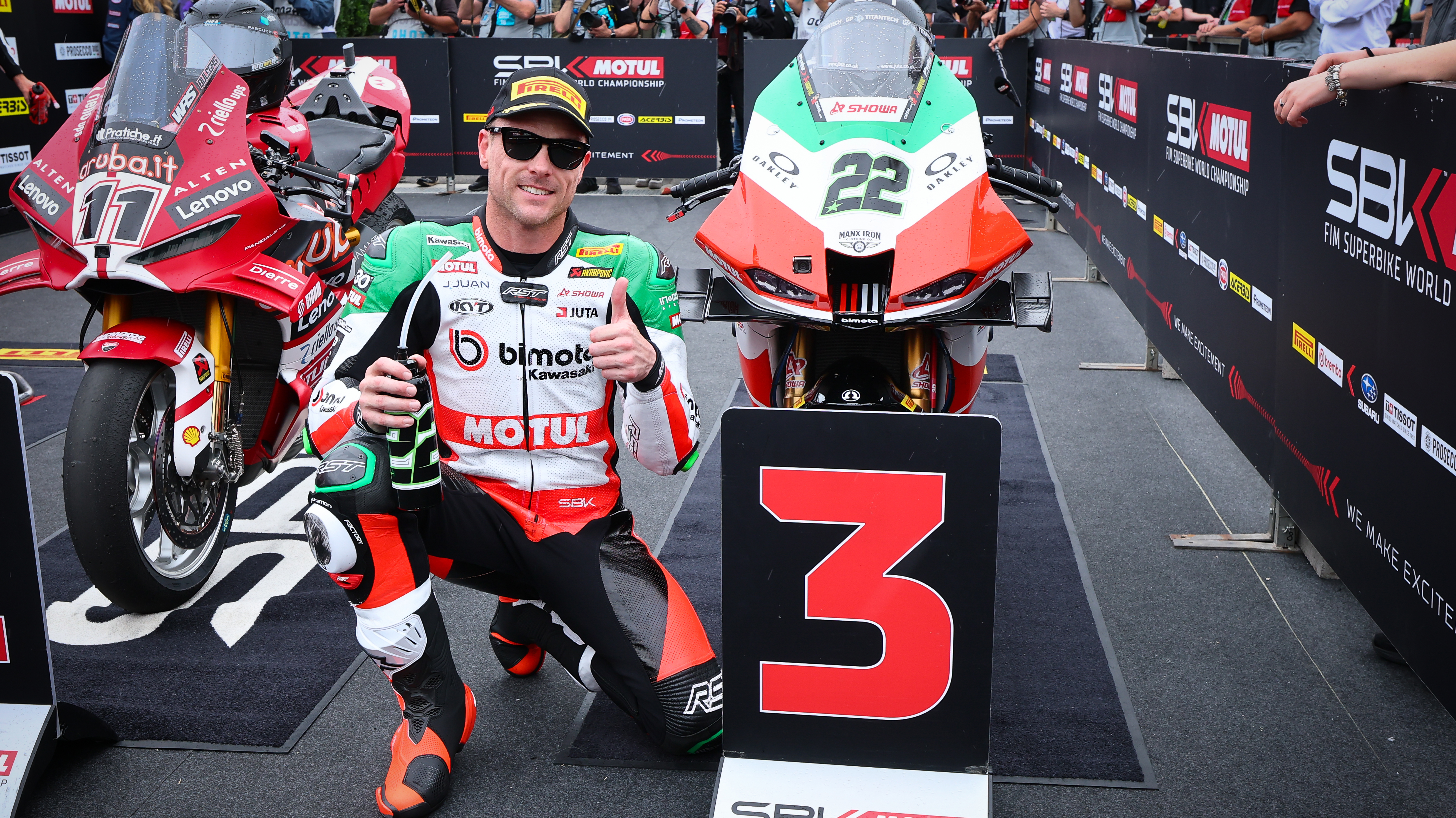 L’arrivée de la pluie a coïncidé avec la remontée de Bassani sur Bulega. Après avoir doublé son coéquipier, l’Italien a repris plusieurs dixièmes au n°11 dans les deux derniers secteurs. Bulega a toutefois tenu bon à l’entame du septième tour, tandis que Montella tirait au large au virage n°1, mettant fin à ses espoirs de victoire. Aux avant-postes, Bulega s’est forgé une avance de plus d’une seconde sur Bassani au huitième passage. Il décroche sa deuxième victoire du week-end, la 22e de sa carrière en WorldSBK, égalant ainsi le total de Marco Melandri. Bassani s’offre son premier podium pour Bimota en terminant deuxième. Alex Lowes a résisté au retour de Montella pour assurer un double podium historique à Bimota, le premier depuis la Course 2 d’Estoril en 1988 (lorsque Stéphane Mertens avait battu Davide Tardozzi).