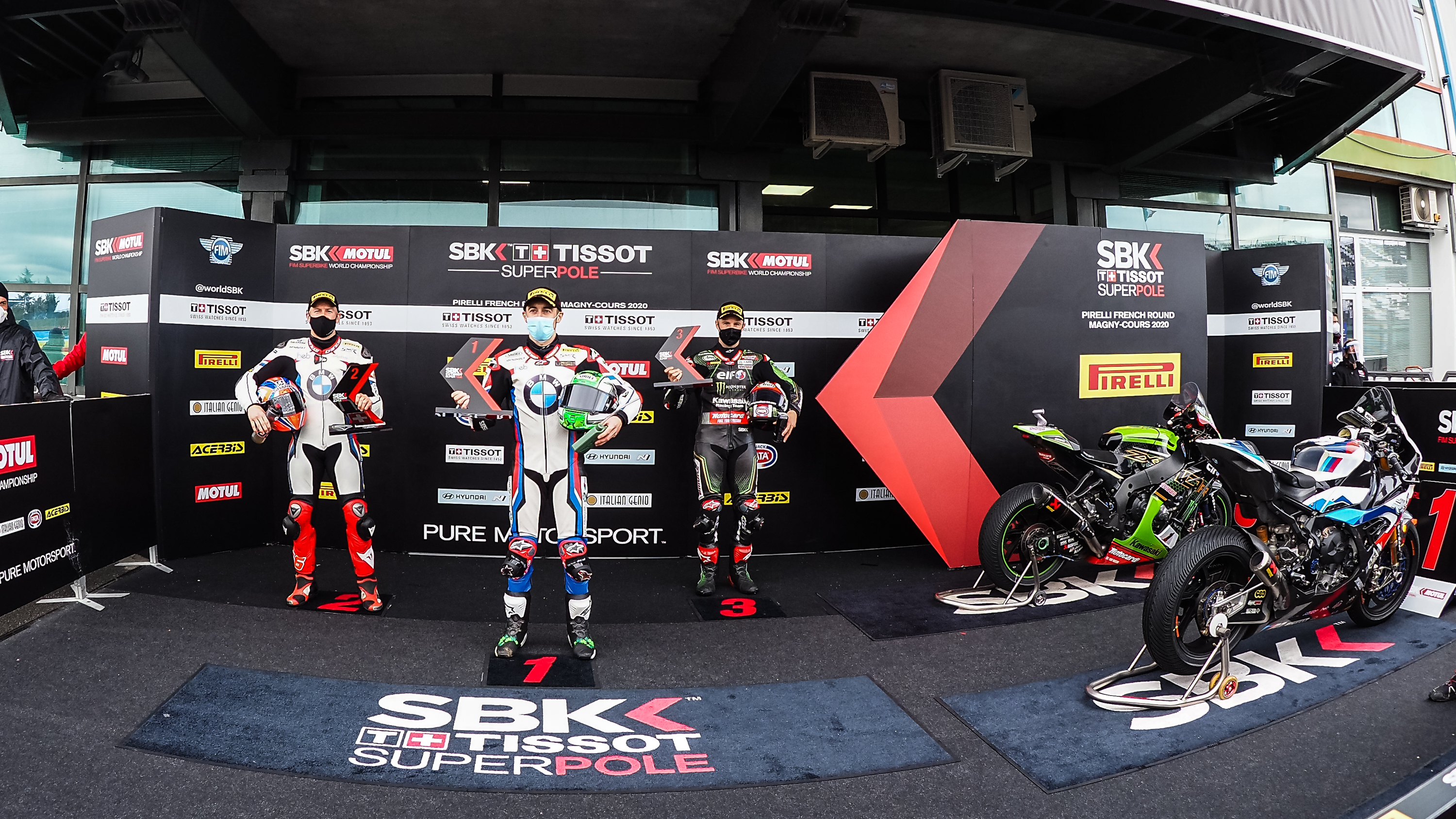 Asfalto bagnato ma che si va progressivamente asciugando per i piloti del Campionato del Mondo MOTUL FIM Superbike al Circuit de Nevers Magny-Cours. I migliori al termine della Tissot Superpole sono i due portacolori BMW Eugene Laverty (BMW Motorrad WorldSBK Team) e Tom Sykes. Per la Casa tedesca si tratta della prima doppietta in Superpole.