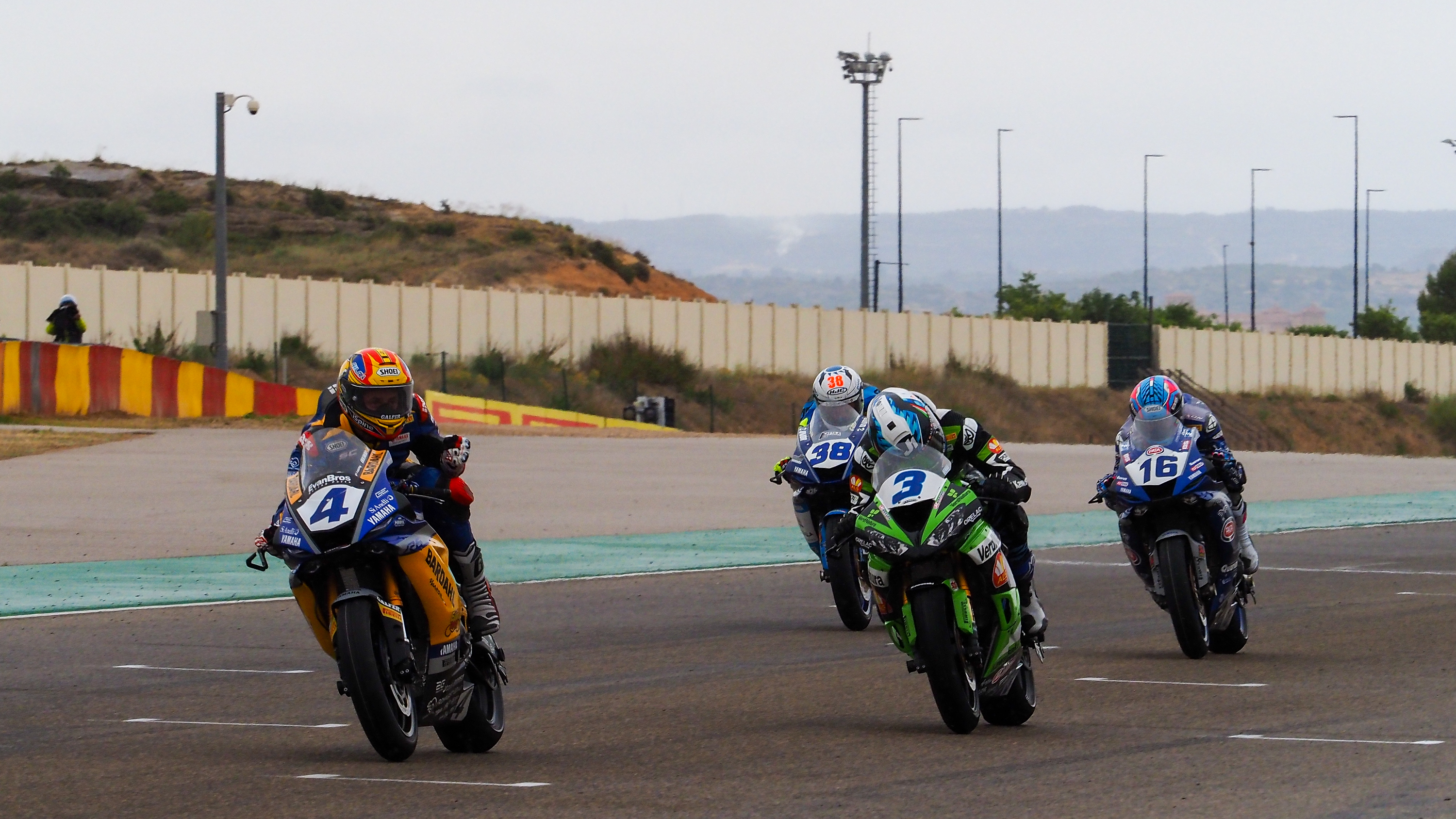 La vittoria è questione che riguarda Odendaal, De Rosa, Cluzel e Soomer, tutti racchiusi in meno di quattro decimi. De Rosa all’ultimo giro è in testa e vede vicina la prima vittoria nel WorldSSP ma viene superato all’interno da Odendaal che fa due su due al MotorLand Aragon. Cluzel chiude terzo con 55 millesimi di vantaggio su Soomer.