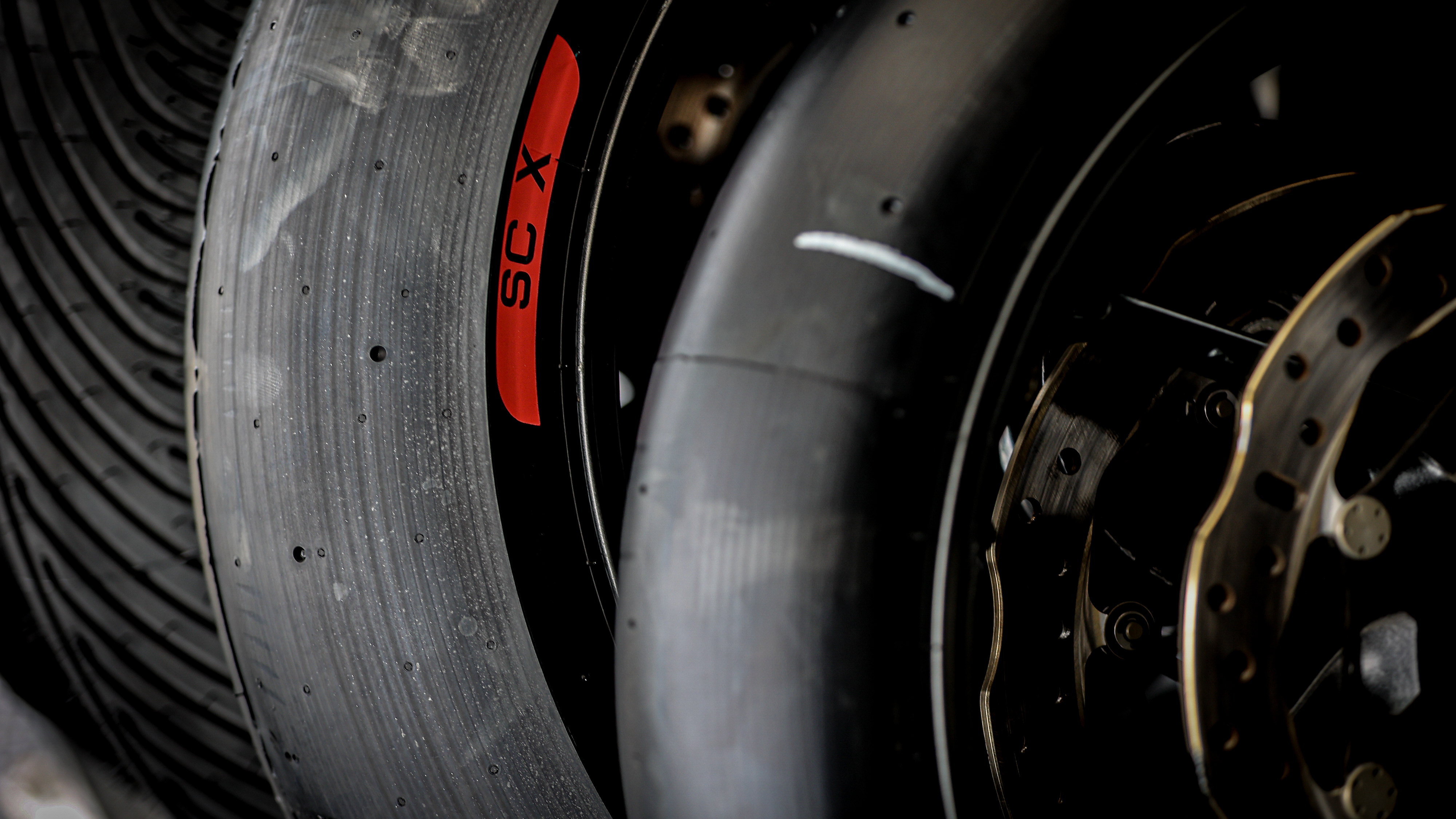 All’anteriore si potrà scegliere tra due slick della fascia standard: SC1 media e SC2 hard che offre una maggiore tenuta rispetto alla SC1 che però è quella maggiormente utilizzata per la capacità di adattarsi a caratteristiche diverse su vari circuiti. In caso di bagnato, all’anteriore ci sarà l’intermedia standard o la SCR1 standard da bagnato oltre a una gomma specifica di sviluppo, la E0158.