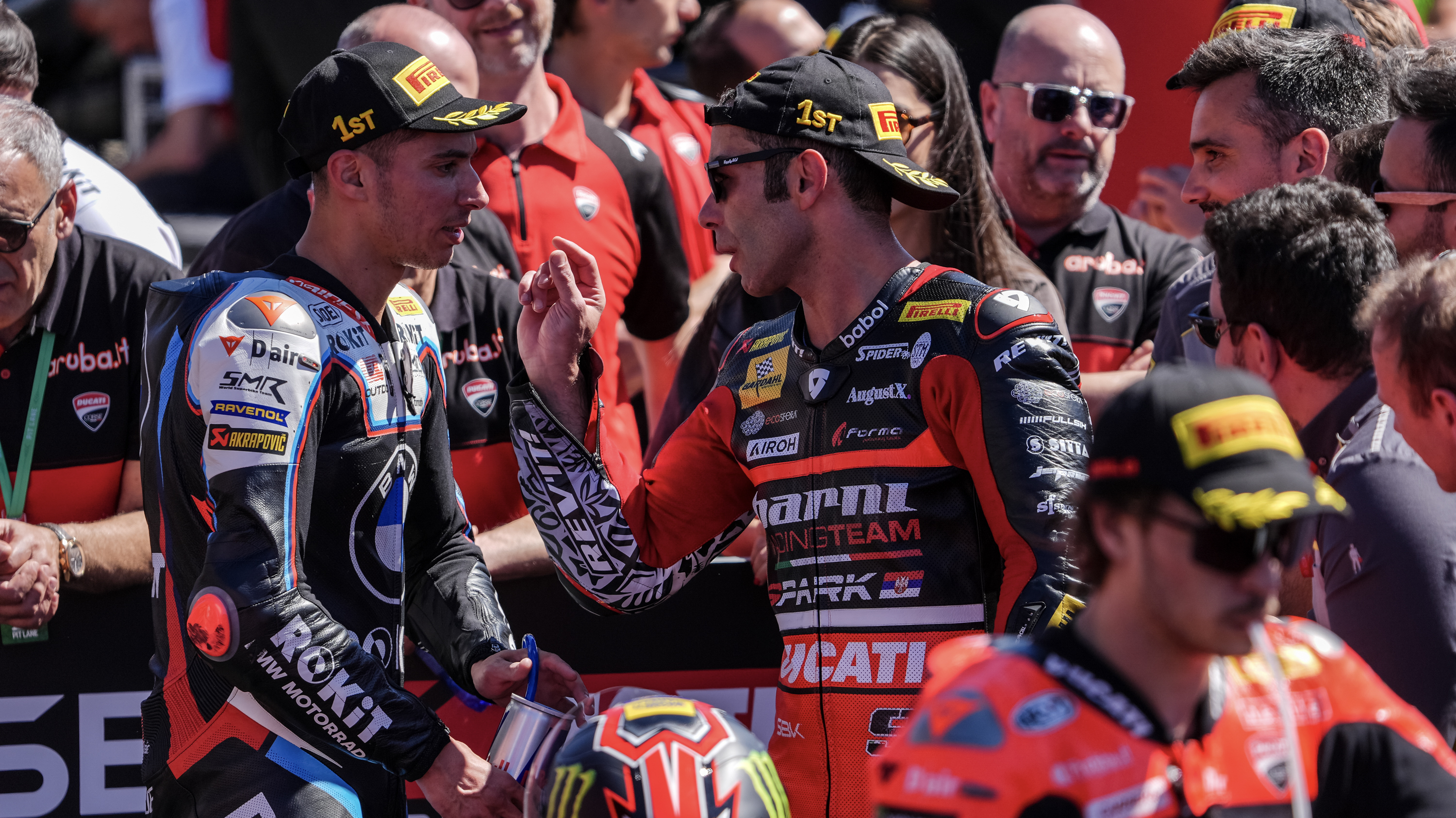 Andrea Locatelli (Pata Maxus Yamaha) alla ripartenza si porta in seconda posizione e poi chiude quarto davanti a Michael van der Mark (ROKiT BMW Motorrad WorldSBK) che centra il suo miglior risultato stagionale finora. Sesta piazza per Danilo Petrucci (Barni Spark Racing Team), partito male originariamente dalla quarta casella: bella rimonta per ‘Petrux’ che precede Axel Bassani (bimota by Kawasaki Racing Team).
