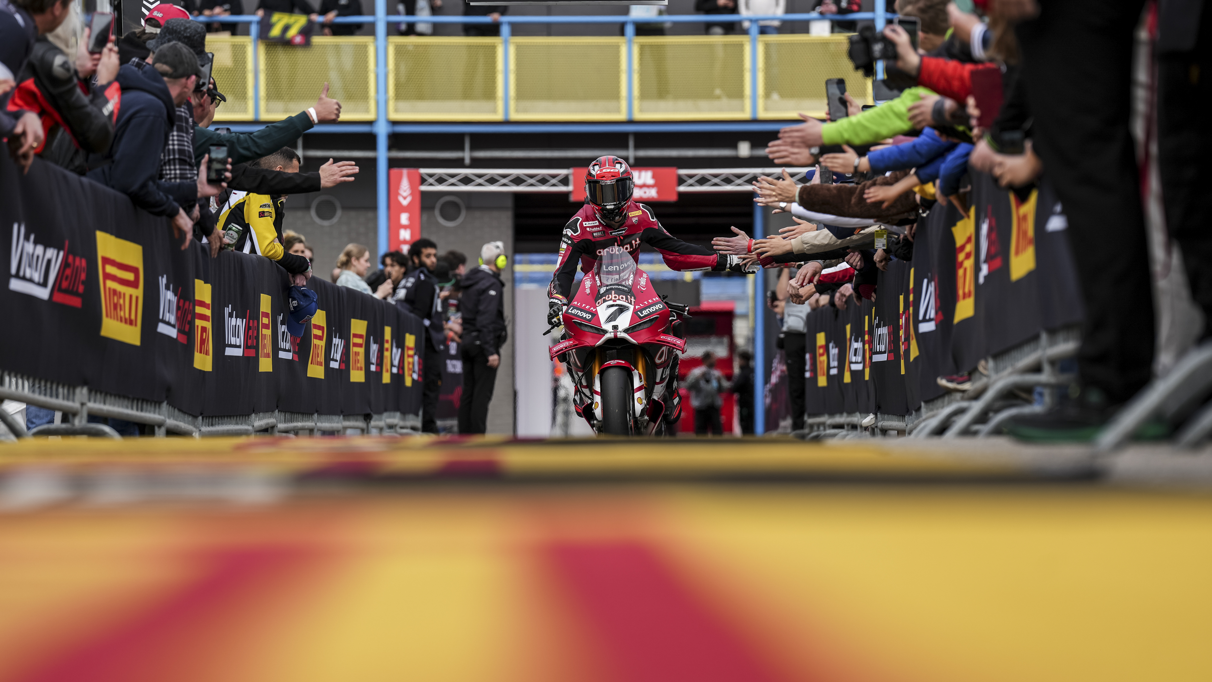 All’inizio del secondo run Lecuona si migliora e realizza un 1’32.567 ma Bulega risponde con un incredibile giro record in 1’32.144: la sua sessione si chiude con una caduta in curva 1 mentre sta spingendo ancora di più. Sam Lowes grazie a un 1’32.473 strappa il secondo tempo. Per Bulega si tratta della quarta pole consecutiva: nel 2021 Jonathan Rea (Honda HRC) fu l’ultimo a centrare le prime tre pole della stagione, Carlos Checa nel 2011 l’ultimo pilota Ducati. Per la prima volta dal 1992, la prima fila è tutta Ducati.