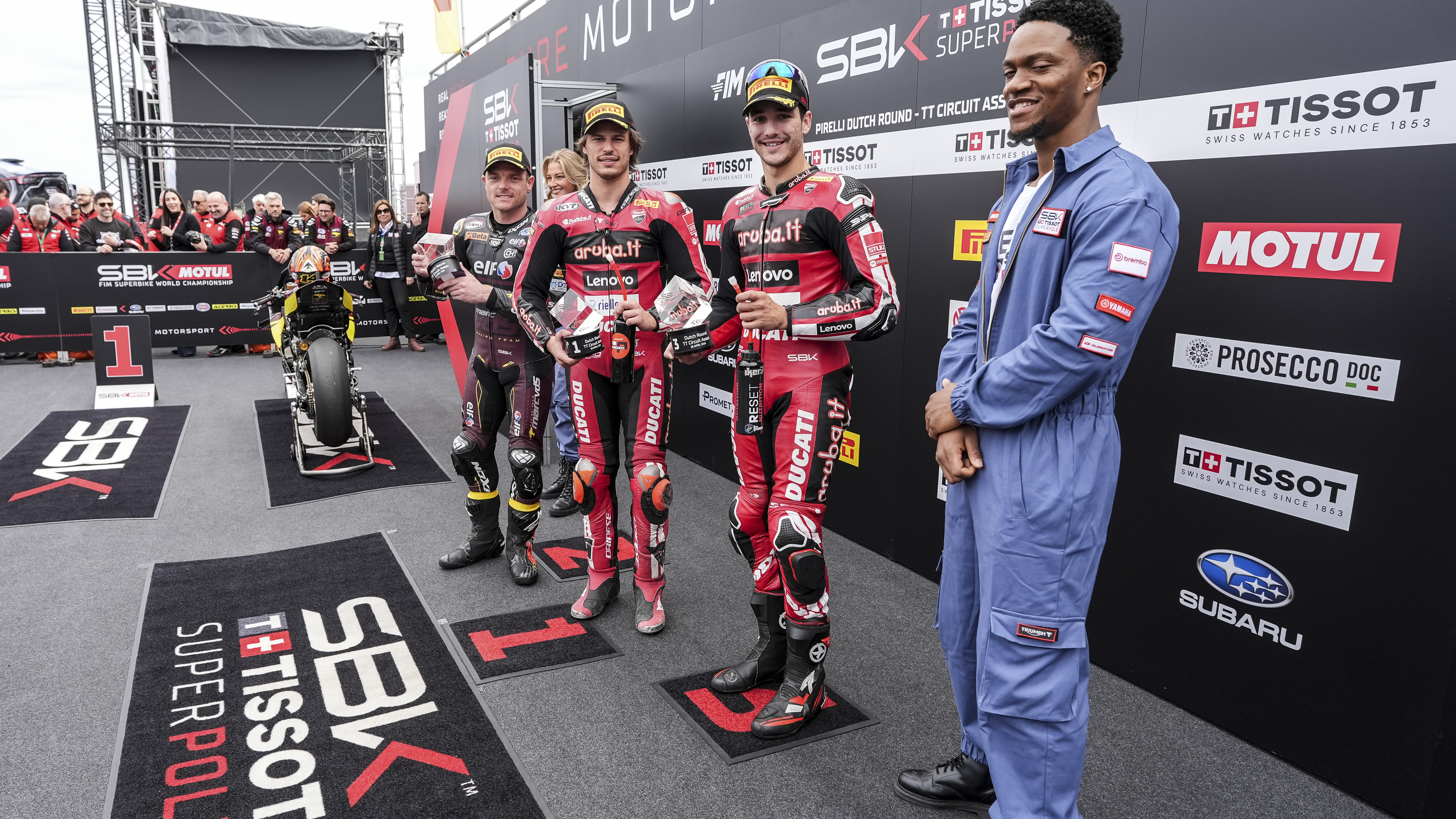 Nicolò Bulega (Aruba.it Racing - Ducati) in pole position al TT Circuit Assen nel Campionato del Mondo MOTUL FIM Superbike con un nuovo giro record al termine della sessione di Tissot Superpole del Round Pirelli d’Olanda. Caduto sul finire del turno, precede Sam Lowes (ELF Marc VDS Racing Team) e il compagno di box Iker Lecuona.